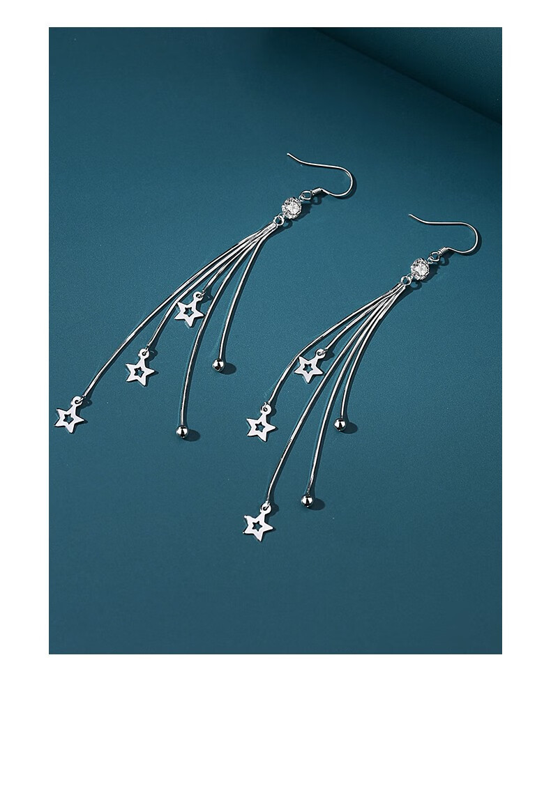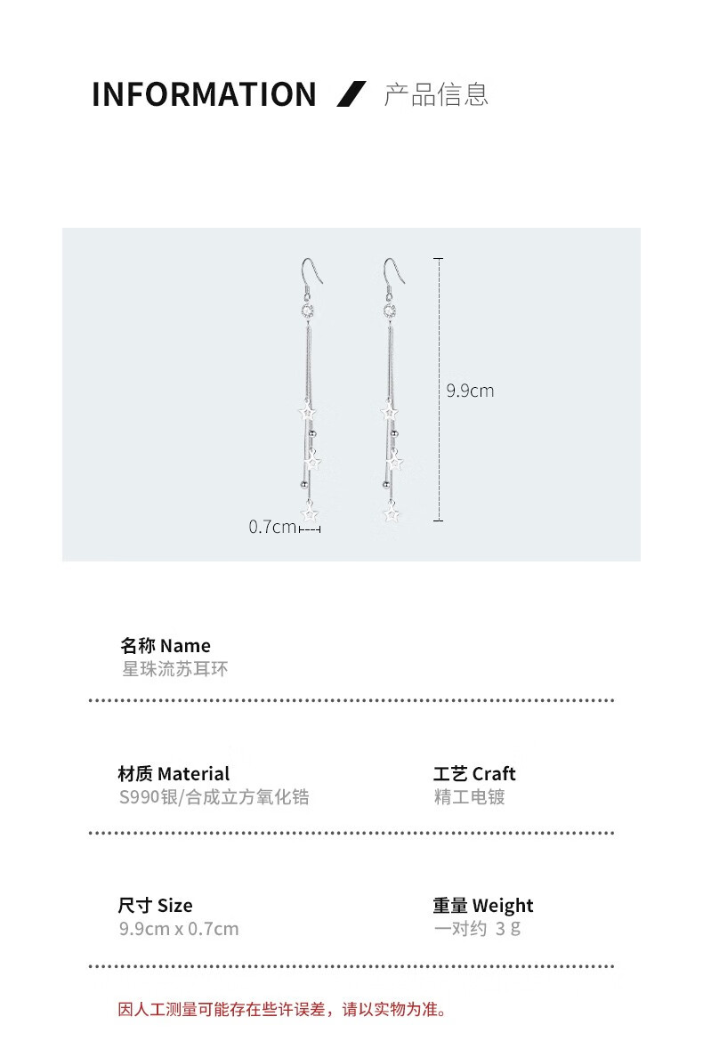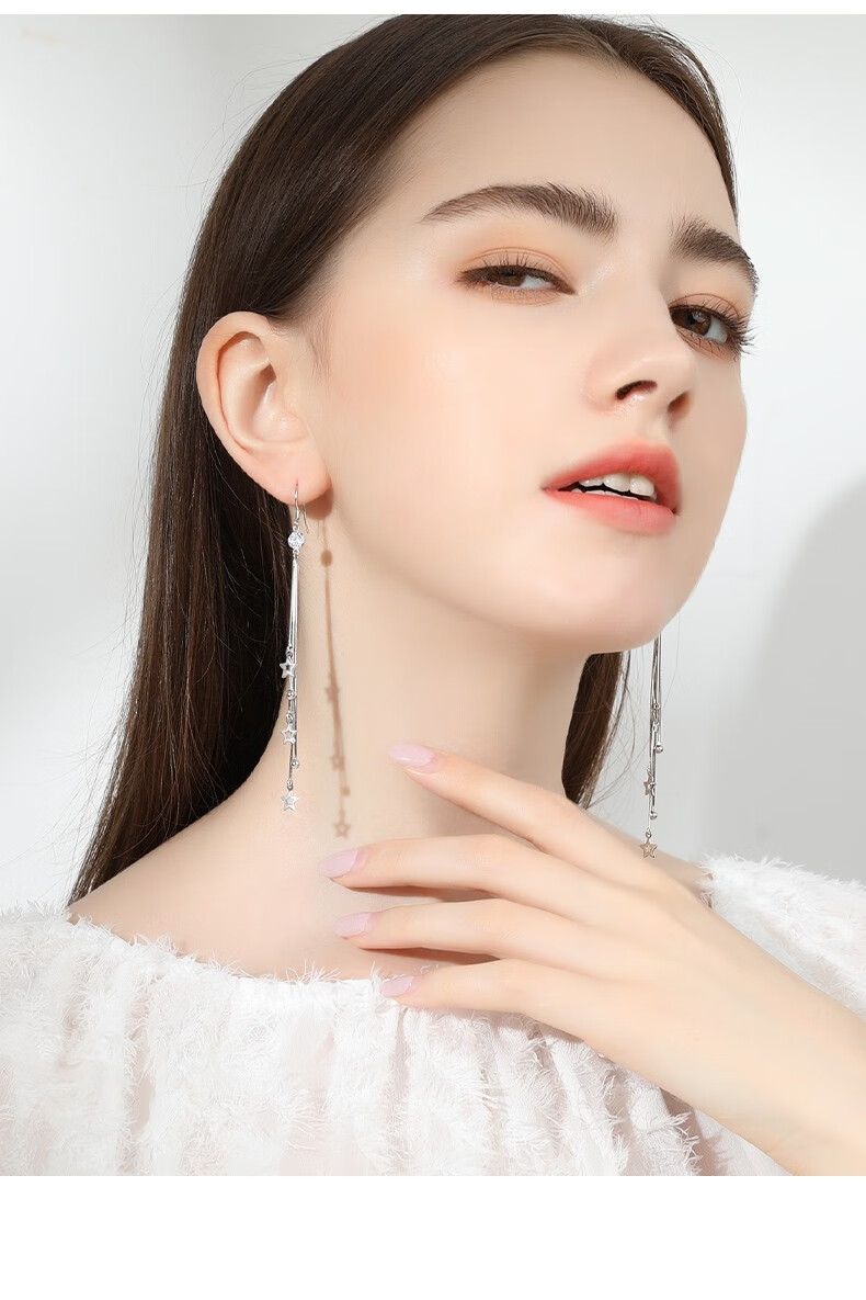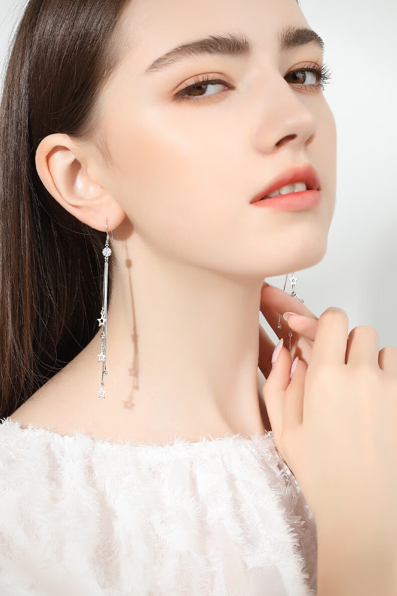 JiuChangShi 99 sterling silver earrings for women, diamond star tassel earrings, earrings, niche birthday gifts for women, 99 pure silver, a pair