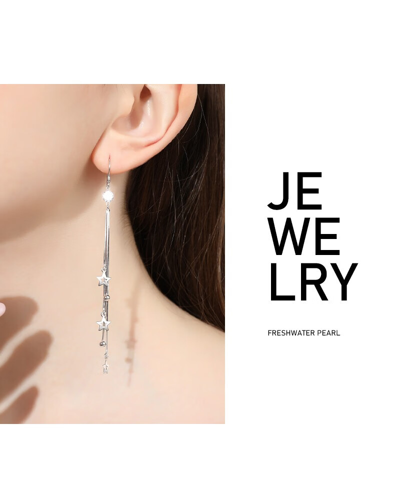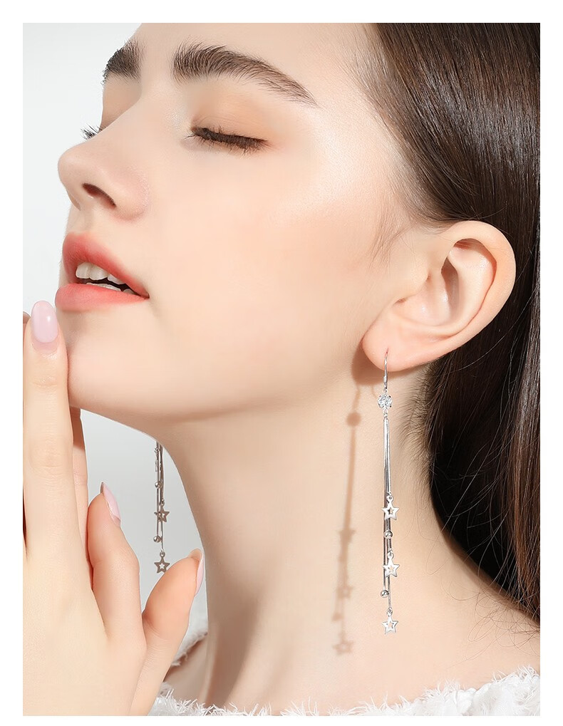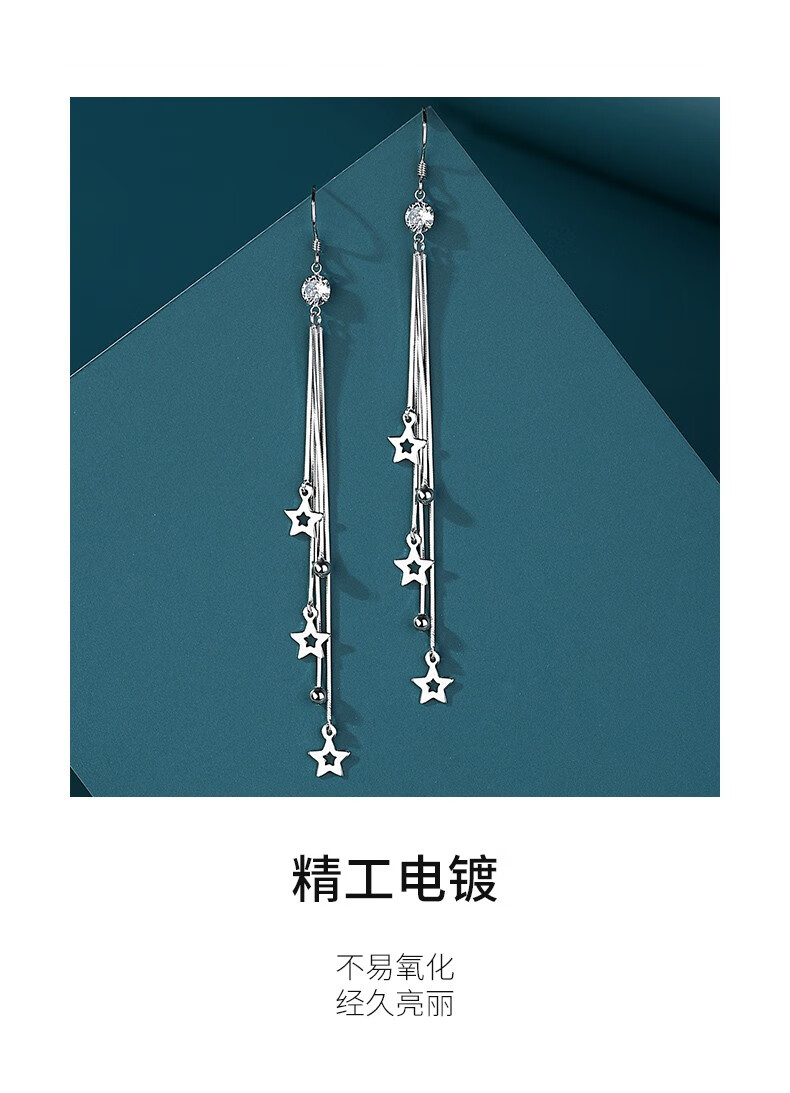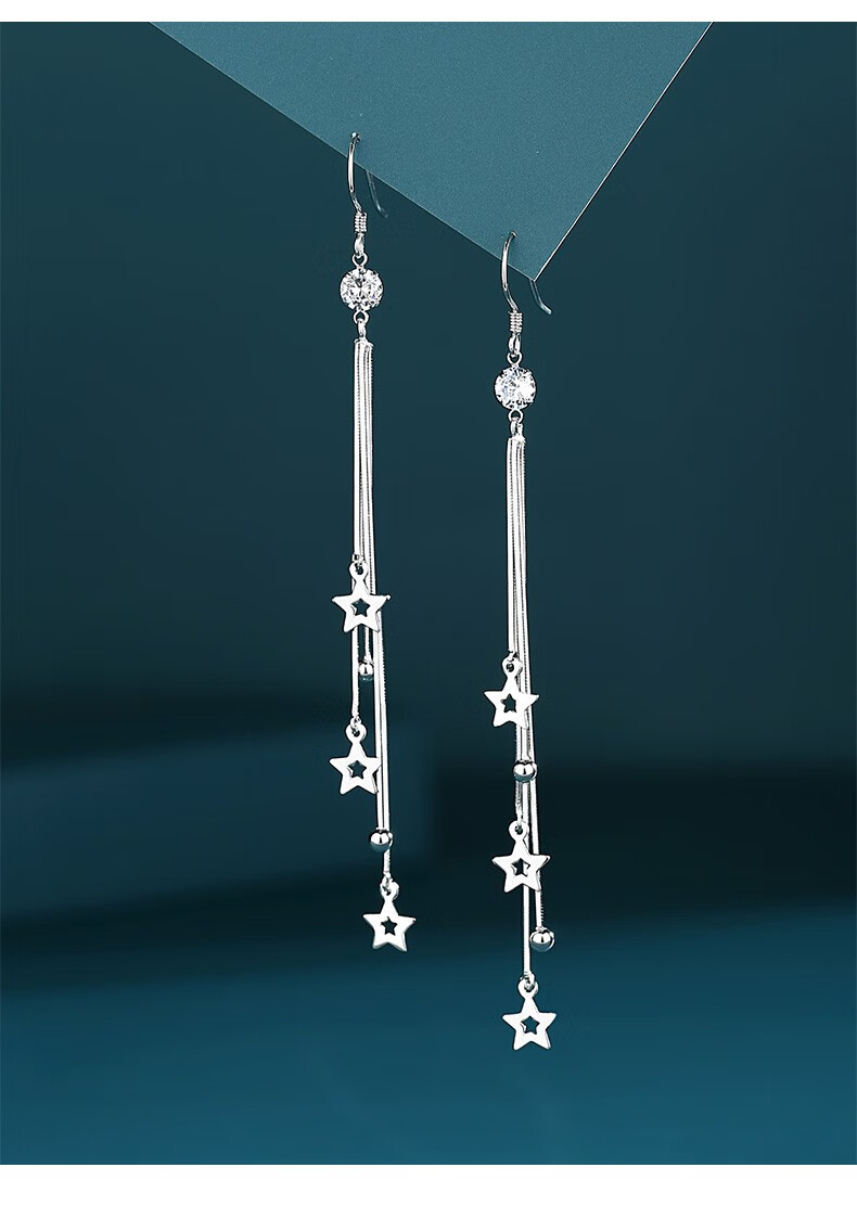 JiuChangShi 99 sterling silver earrings for women, diamond star tassel earrings, earrings, niche birthday gifts for women, 99 pure silver, a pair