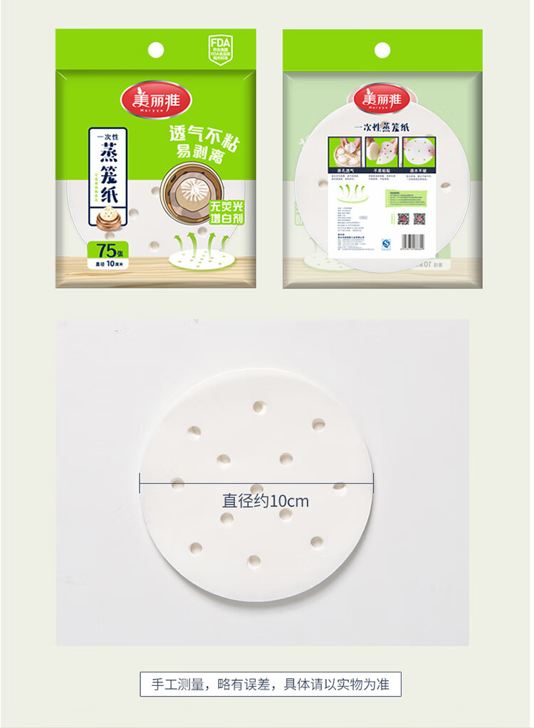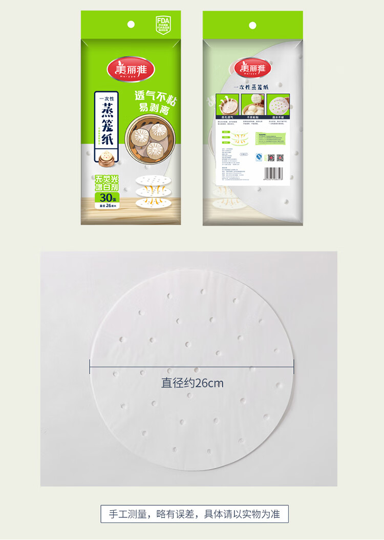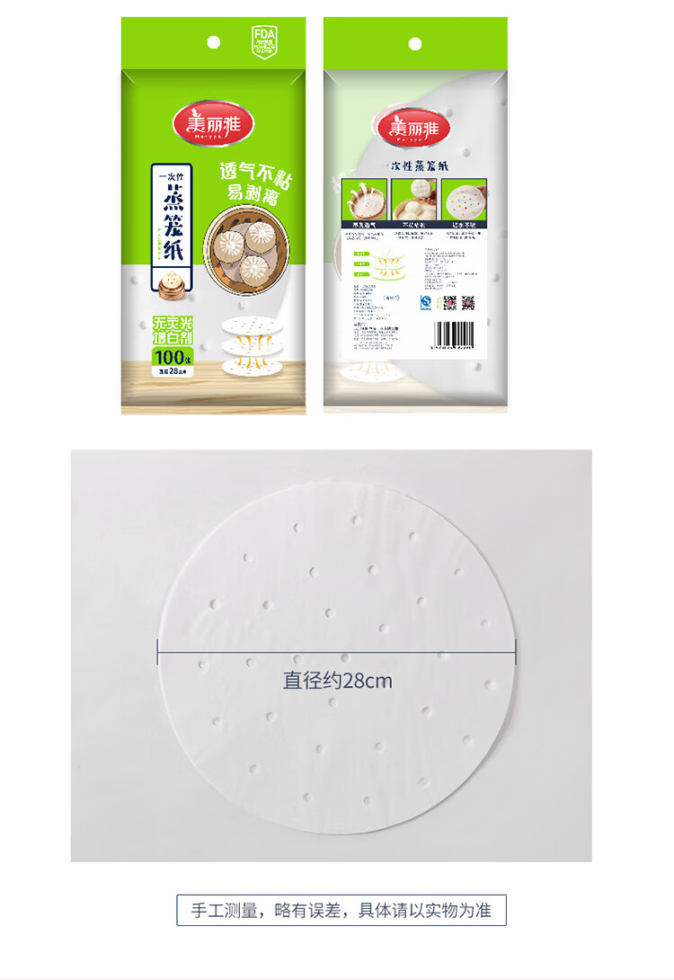 Meiya disposable steamer paper steamed bun paper steamed small steamed bun steamer paper non-stick steamer paper steamer paper steamer paper 28CM*100 sheets