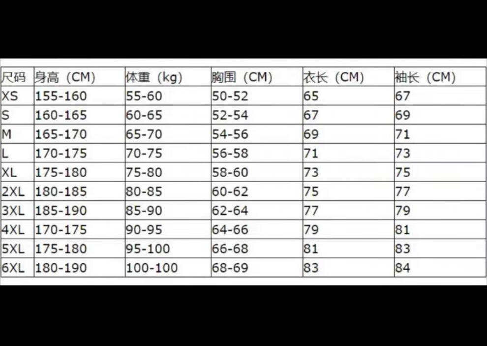 China (cm) 165 / 88-90 170 / 96-98 175 / 108-110 180 / 118-122 185 / 126-130