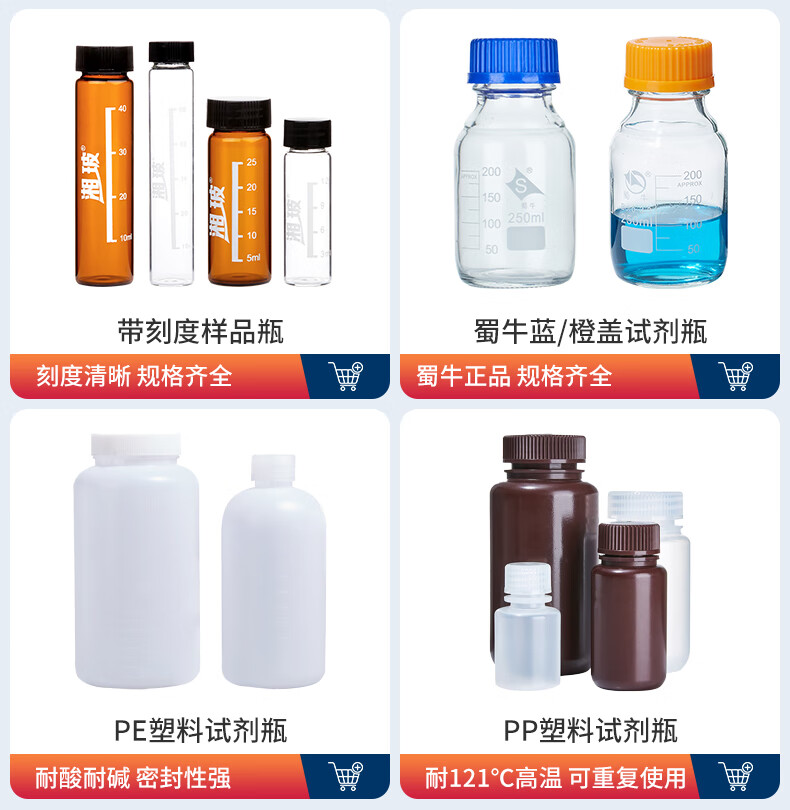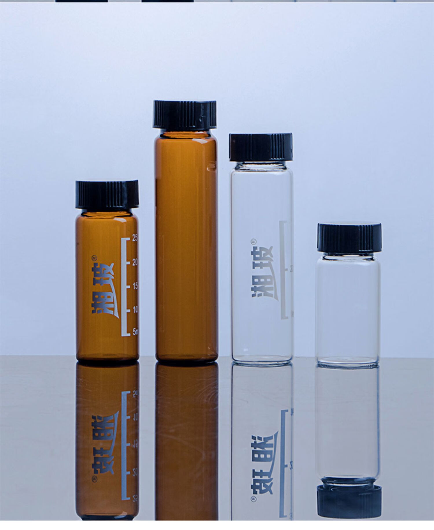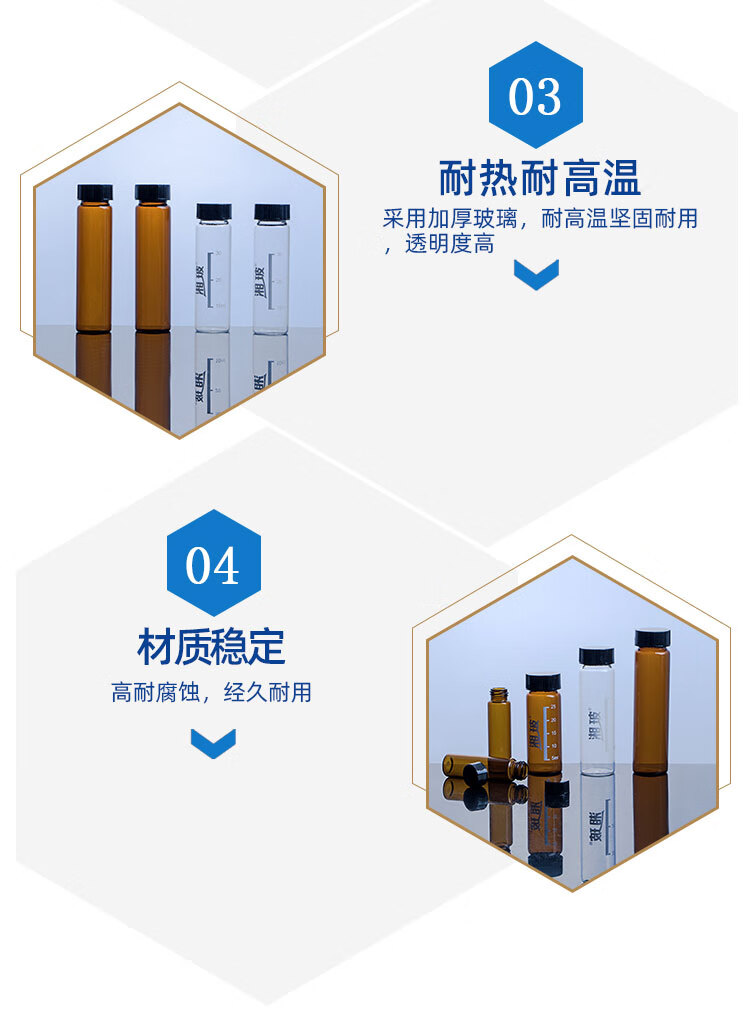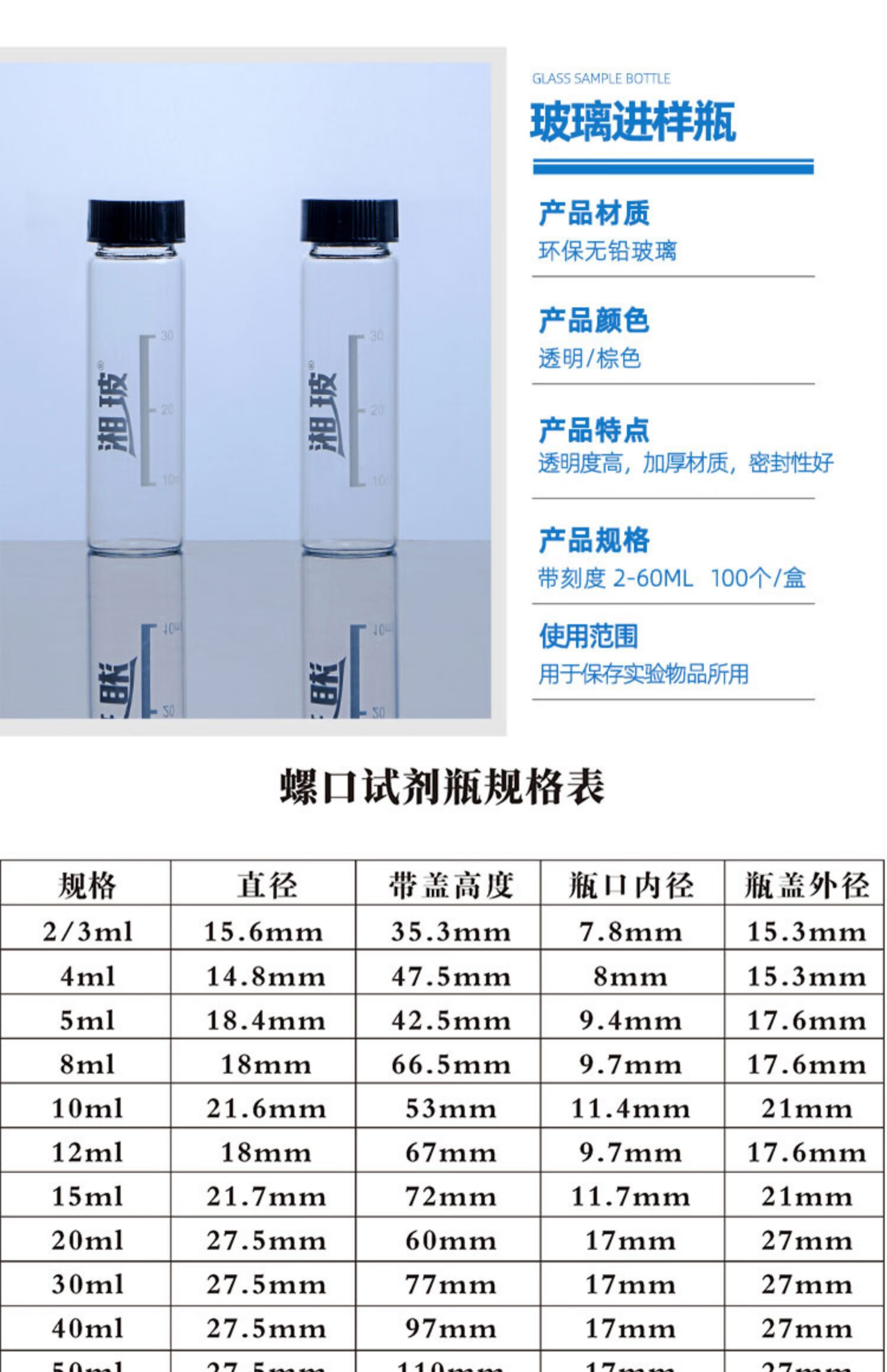 Hunan glass sample bottle injection bottle reagent bottle screw-top bottle transparent brown with scale 35104060ml Hunan glass sample bottle brown 40ml 100 pieces/box with scale printing