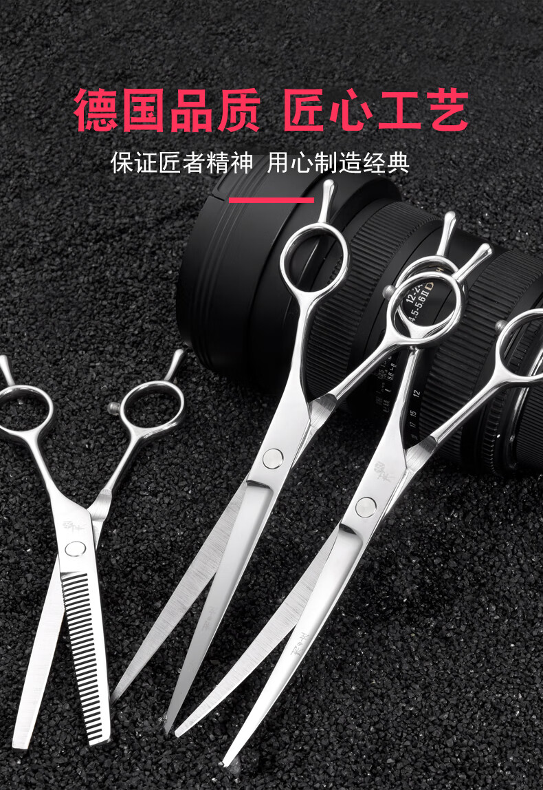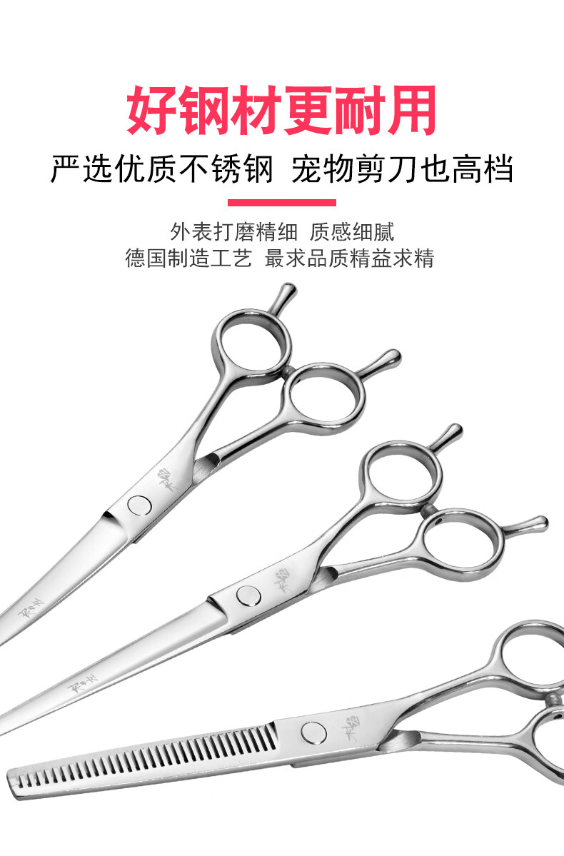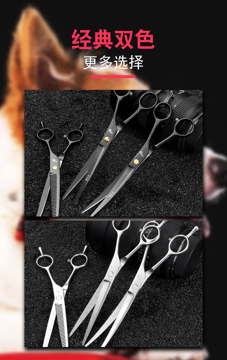 NOPPS Pet Grooming Scissors Professional Hair Trimming Set Curved Scissors Dental Scissors Teddy Self-Cut Dog Hair Cat Hair Trimming Tool Silver Flat Scissors + Dental Scissors + Curved Scissors + Steel Comb + Bag
