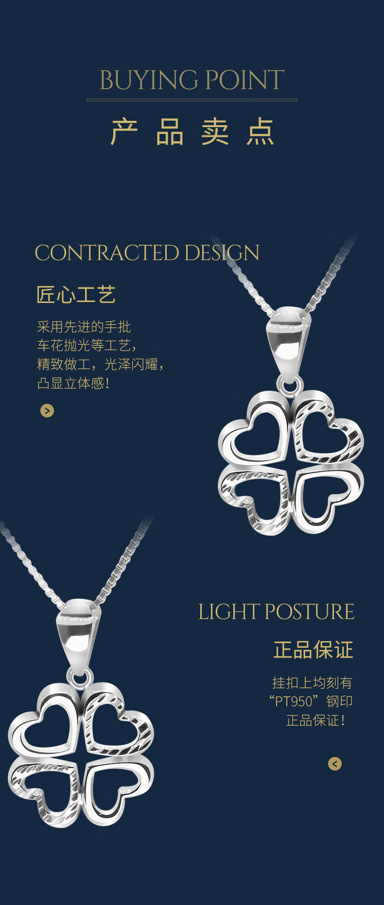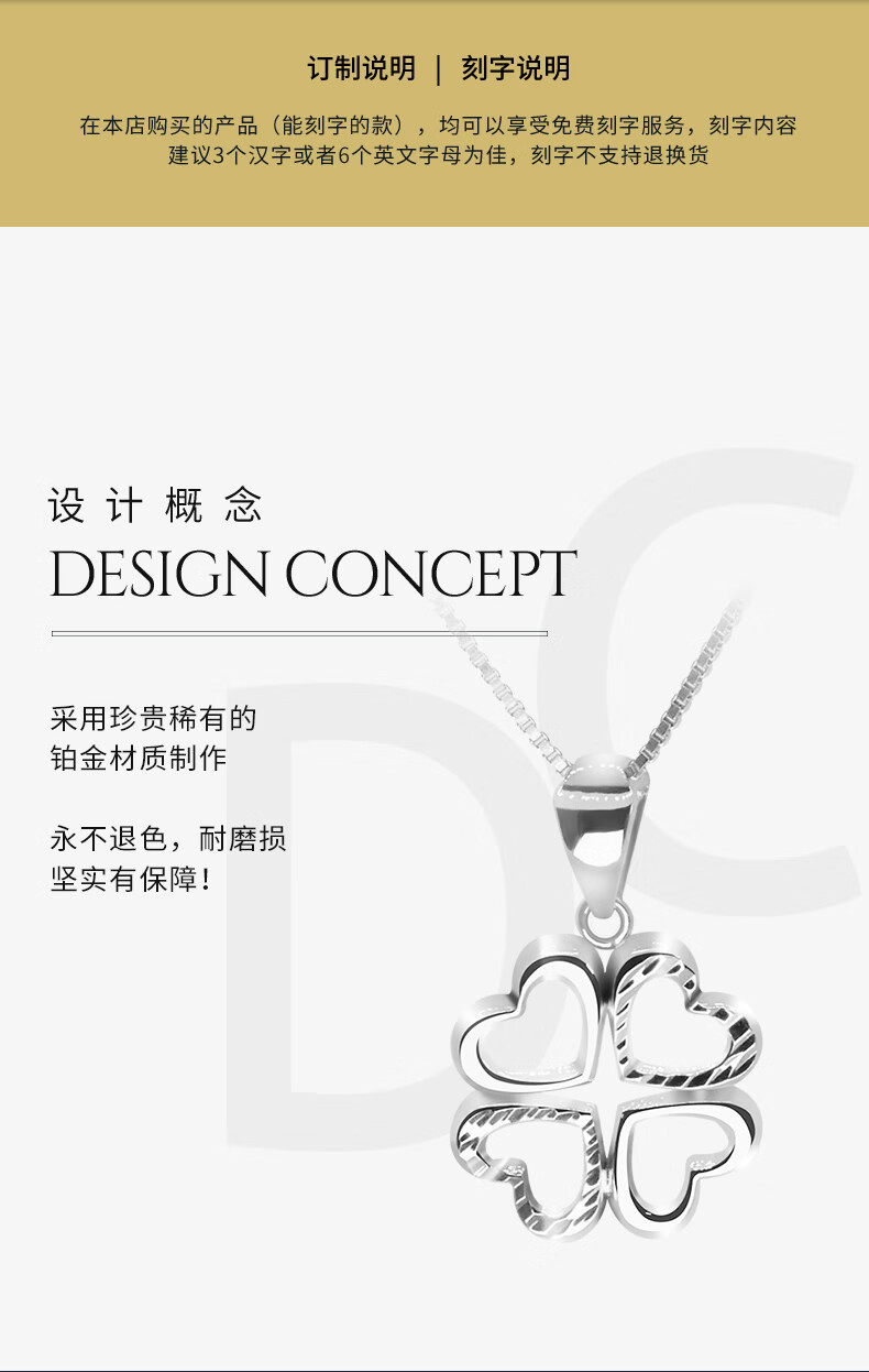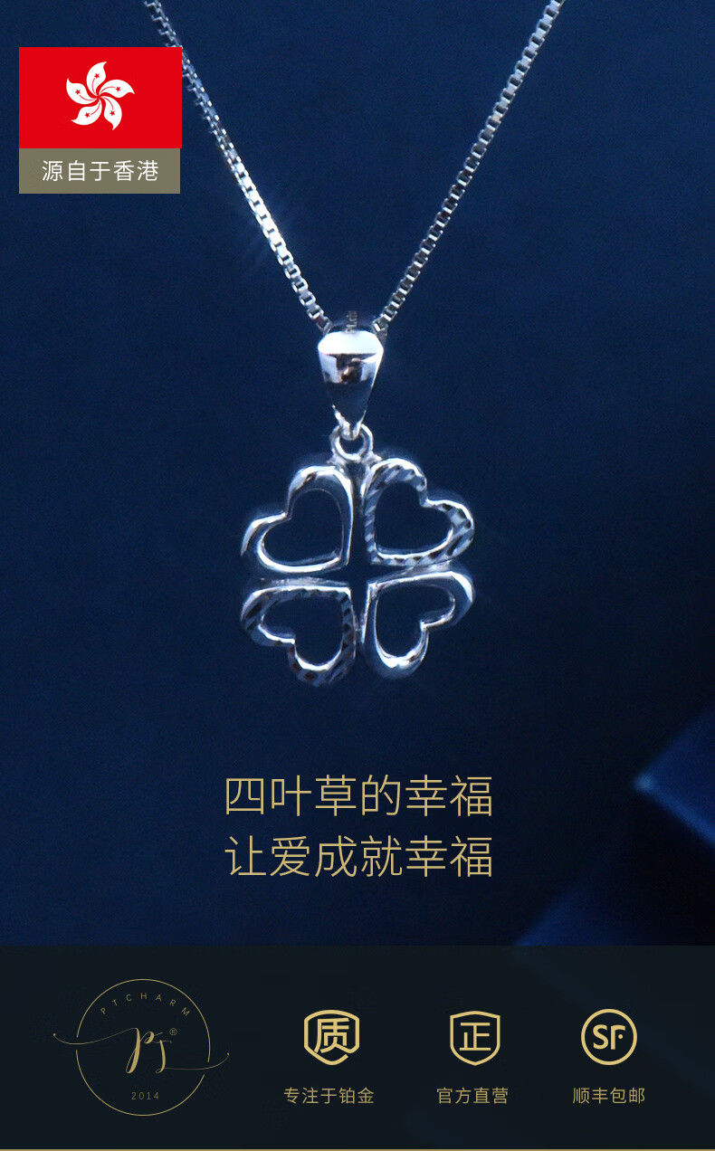Pt.Charm new four-leaf clover platinum pendant women's love platinum pendant women's necklace gift pt950 for your girlfriend. If it is not in stock, it can be customized. Take 1.3g as an example