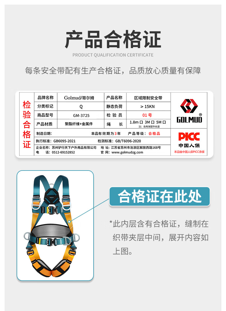 Gorm five-point safety belt, full-body speed differential, high-altitude operation, safety rope set, summer quick wear GM3725 separate safety belt