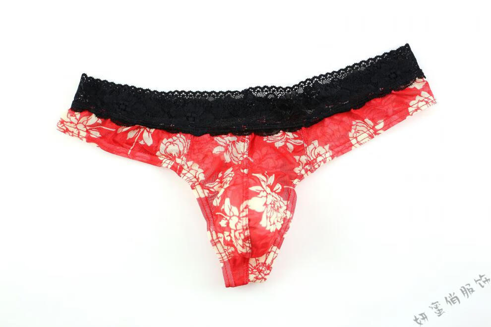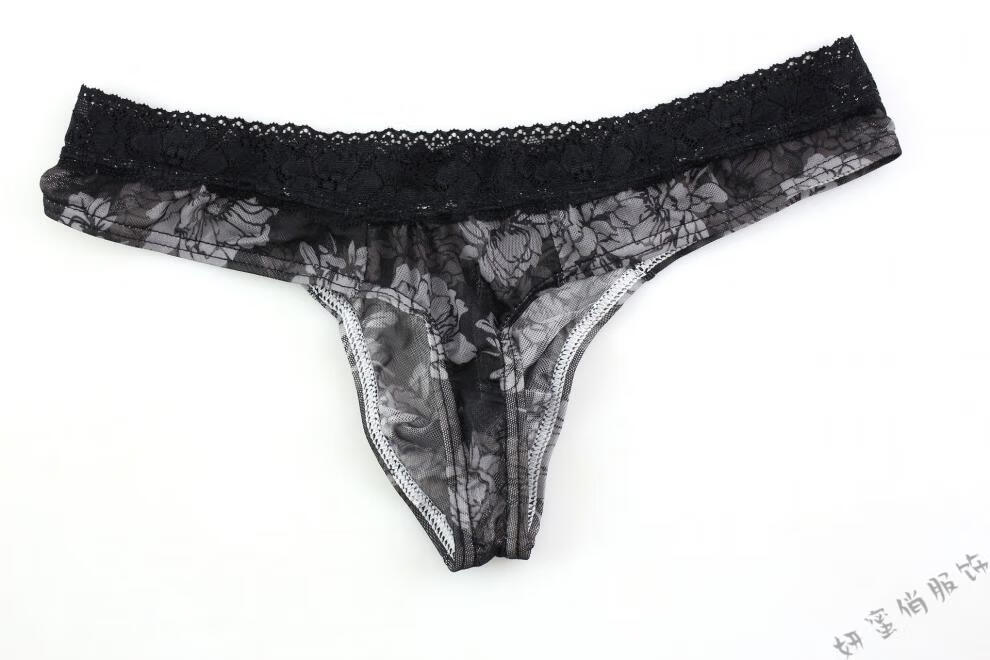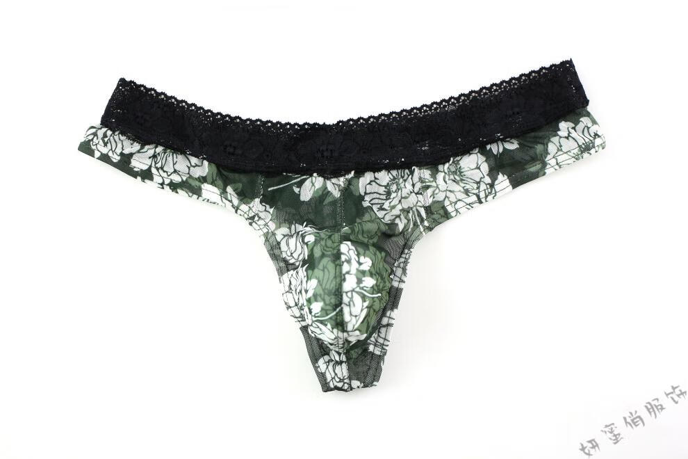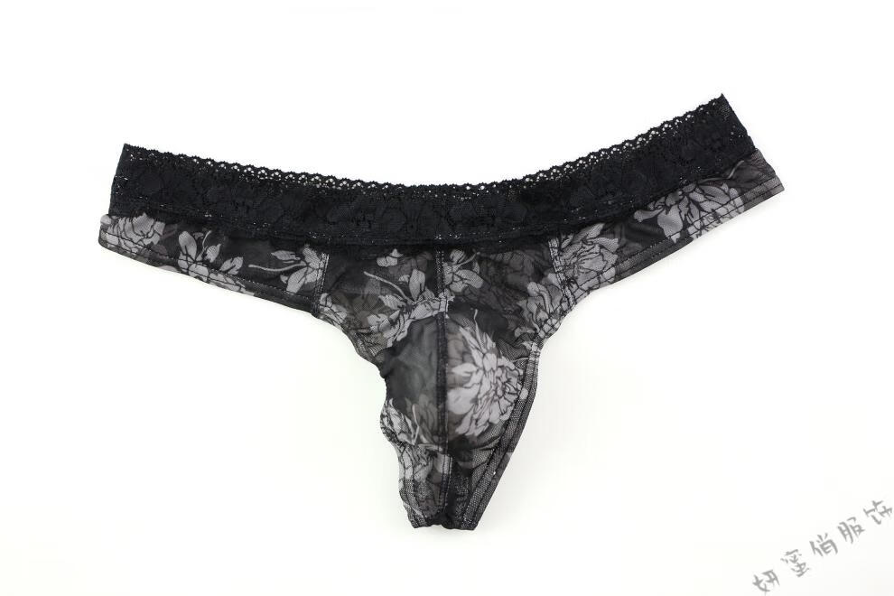 Yanmiqiao Men's Underwear Mesh Printed Thongs Lace Transparent Sexy Thongs U Breathable Transparent Thongs Randomly 3 pieces can be freely matched 3 pieces 2XL