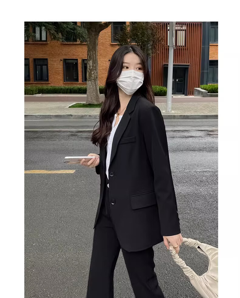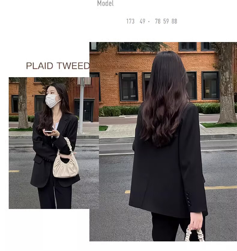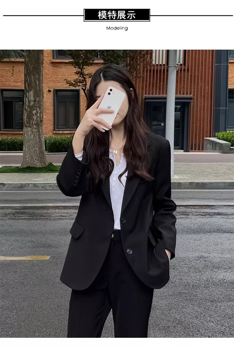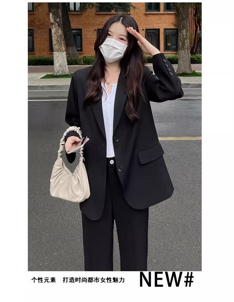 Yusenlian Spring and Autumn New Style Suit Suit Women's Formal Wear College Student Teacher Interview Professional Work Defense Black Suit Jacket Three-piece Set L_Recommendation 105-115Jin Jin is equal to 0.5 kg