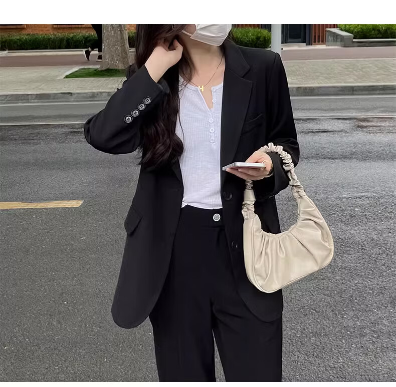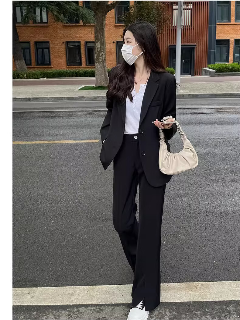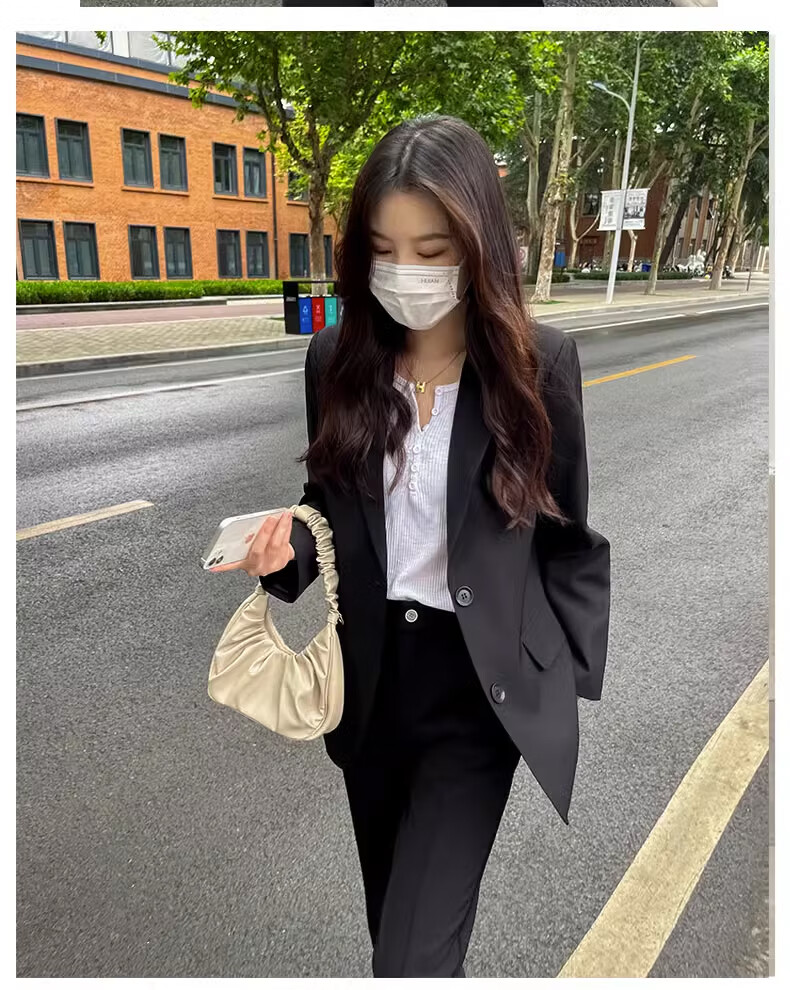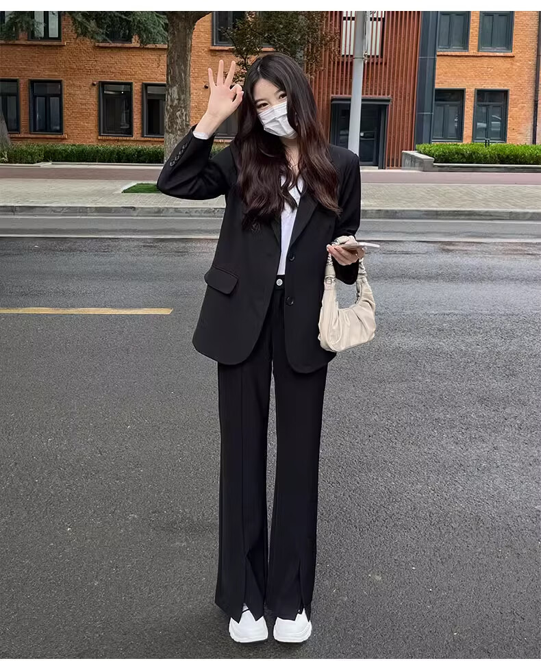 Yusenlian Spring and Autumn New Style Suit Suit Women's Formal Wear College Student Teacher Interview Professional Work Defense Black Suit Jacket Three-piece Set L_Recommendation 105-115Jin Jin is equal to 0.5 kg