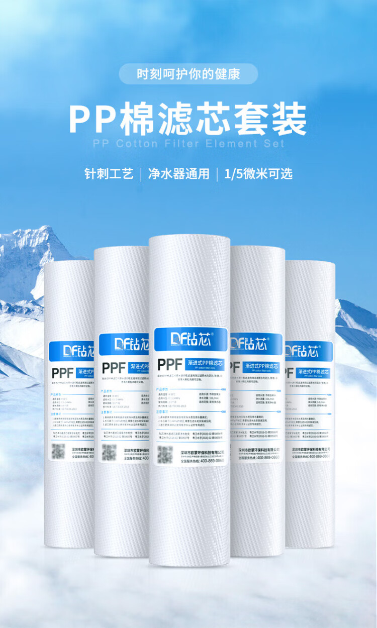Drill core water purifier filter element 10-inch PP cotton filter element 1 micron 5 micron suitable for various models universal filter element 6 pack 1 micron 130g
