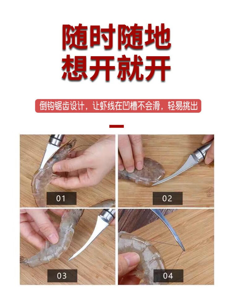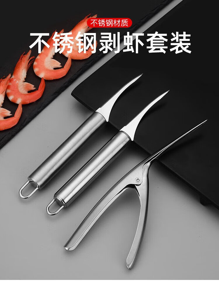 Boshihui Shrimp Remover and Shrimp Peeling Artifact 304 Stainless Steel Shrimp Back Knife, Shaving Shrimp Lines, Peeling, Removing Shrimp Skin, Cleaning Crayfish, Shrimp Line and Peeling Device Set 1 Set