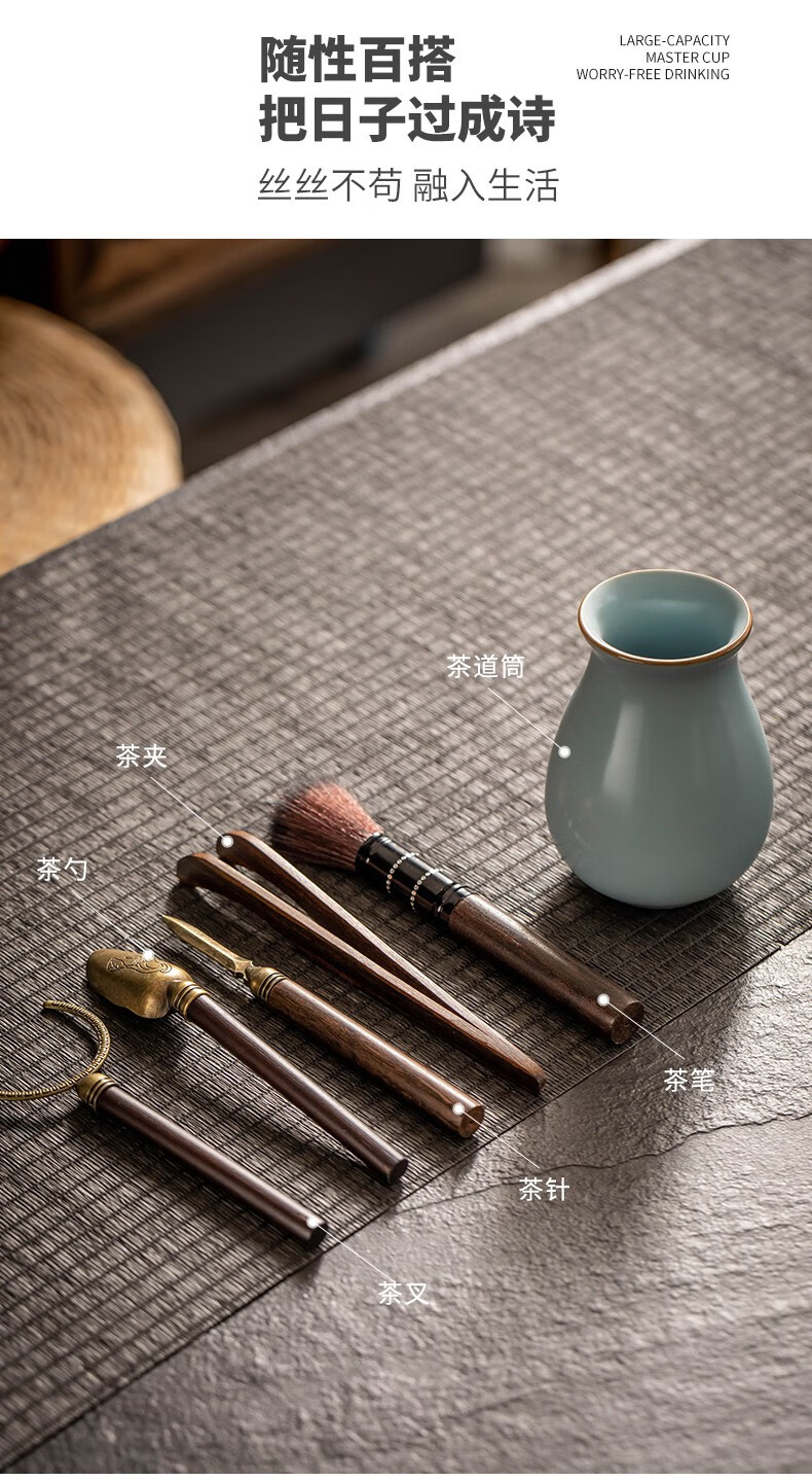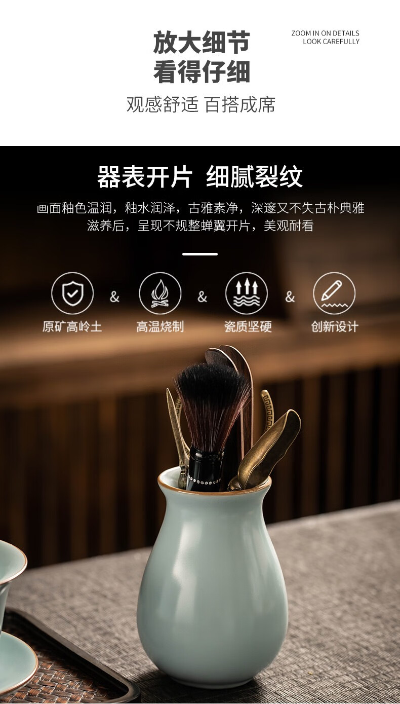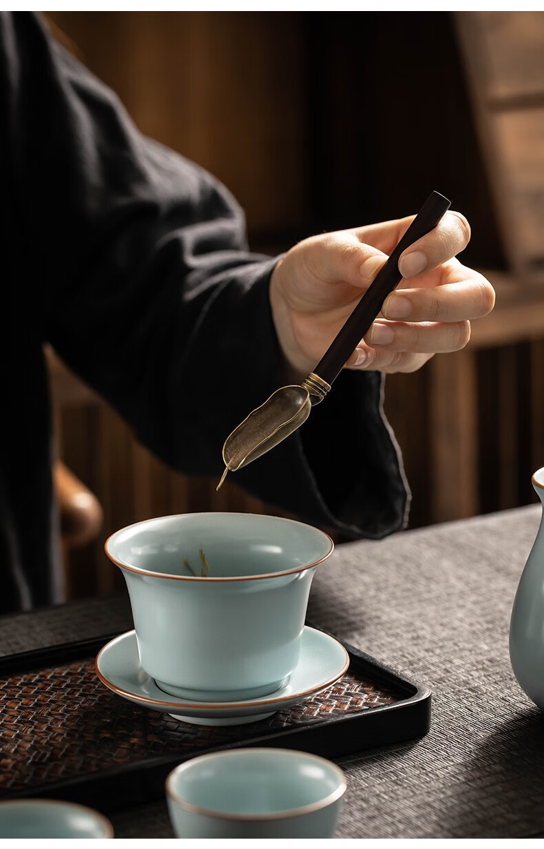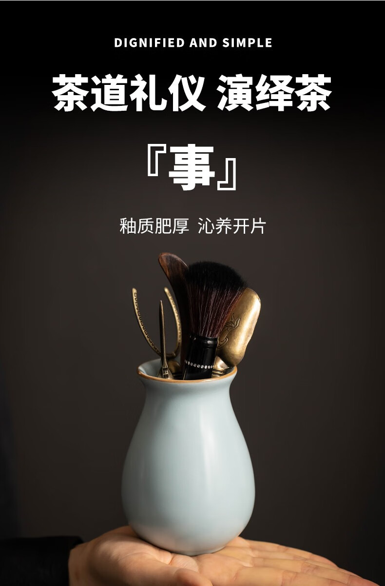 Porcelain brand tea set Ru Kiln Tea Ceremony Six Gentlemen Opening Tea Cistern Teaspoon Tea Needle Tea Clamp Washing Pen Household Tea Set Accessories Tianqing Ru Kiln <Tea Ceremony Six Gentlemen>