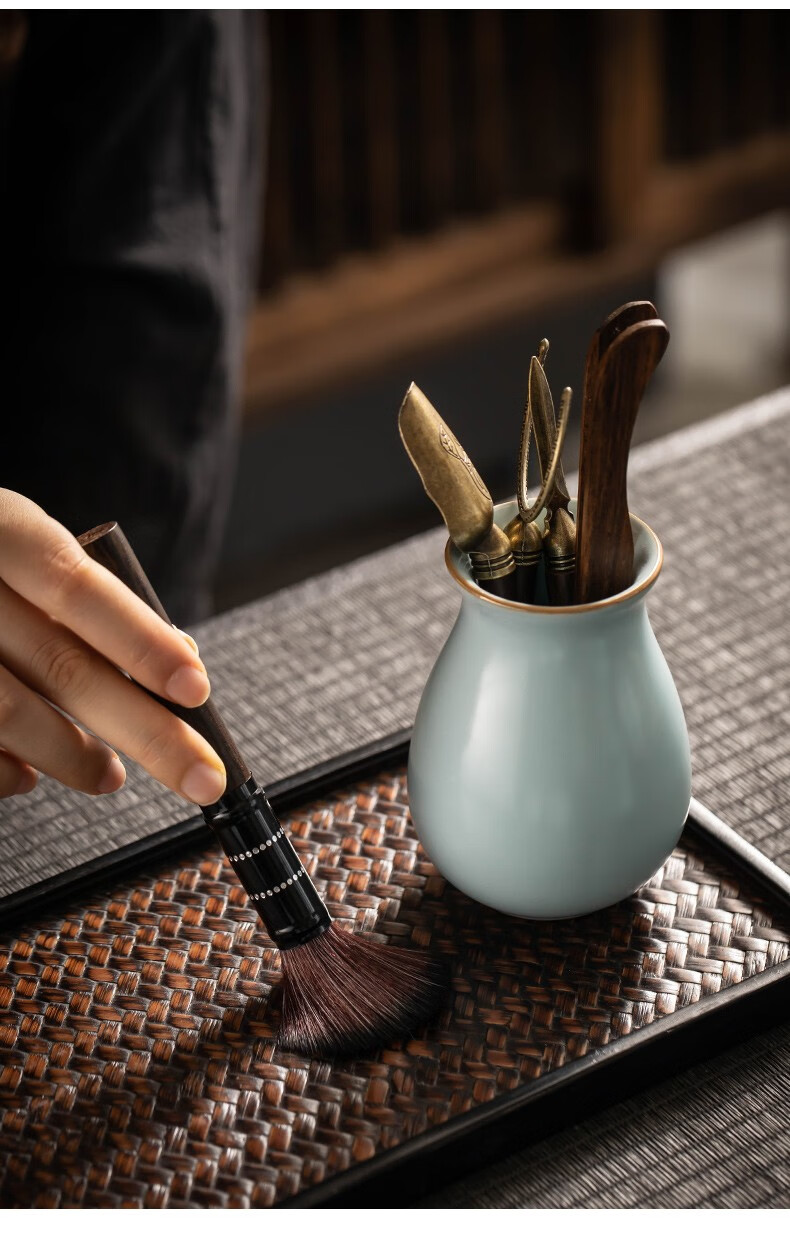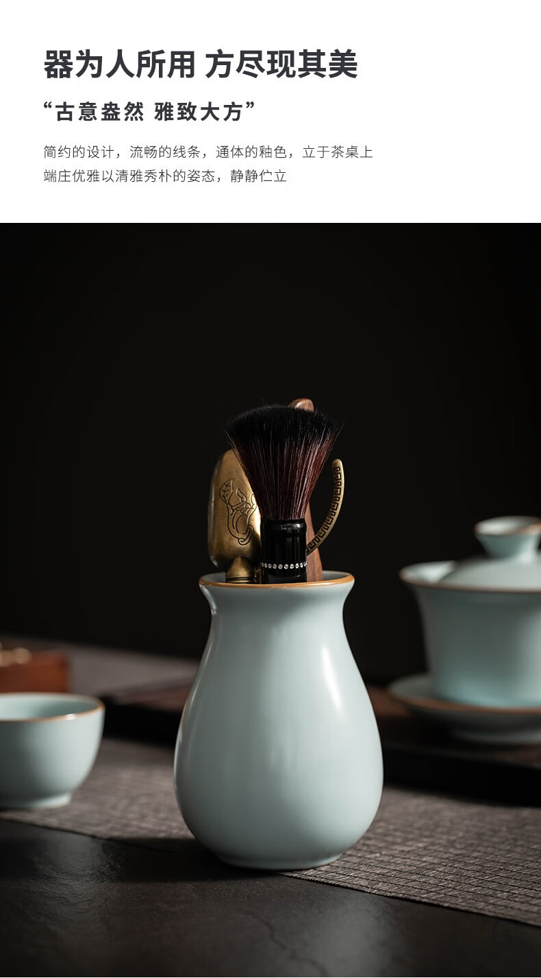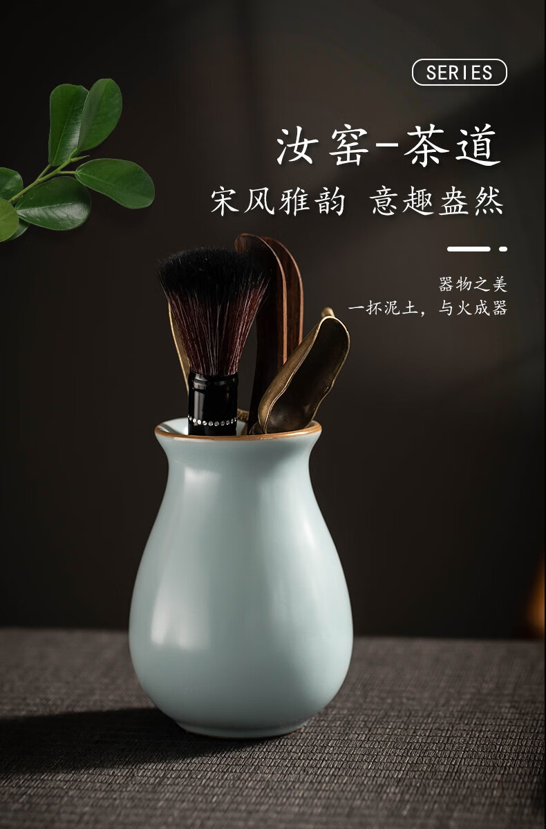 Porcelain brand tea set Ru Kiln Tea Ceremony Six Gentlemen Opening Tea Cistern Teaspoon Tea Needle Tea Clamp Washing Pen Household Tea Set Accessories Tianqing Ru Kiln <Tea Ceremony Six Gentlemen>