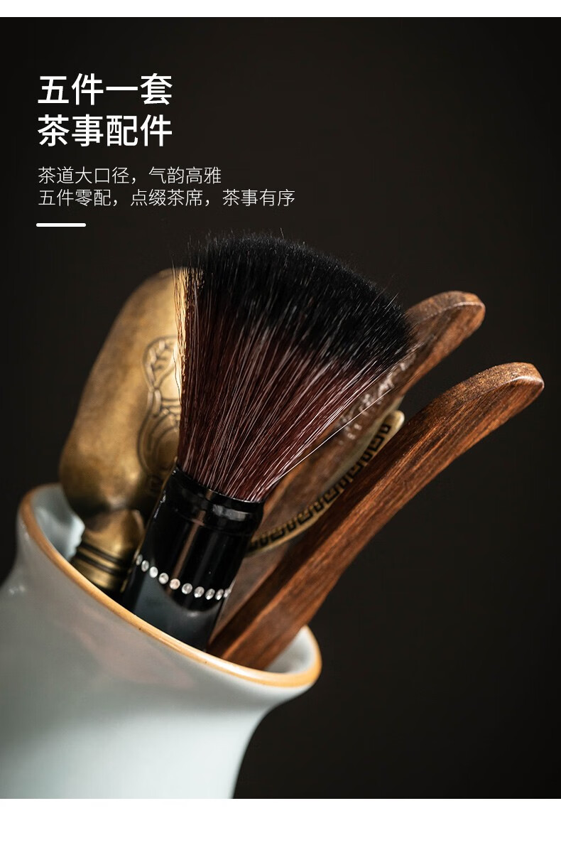 Porcelain brand tea set Ru Kiln Tea Ceremony Six Gentlemen Opening Tea Cistern Teaspoon Tea Needle Tea Clamp Washing Pen Household Tea Set Accessories Tianqing Ru Kiln