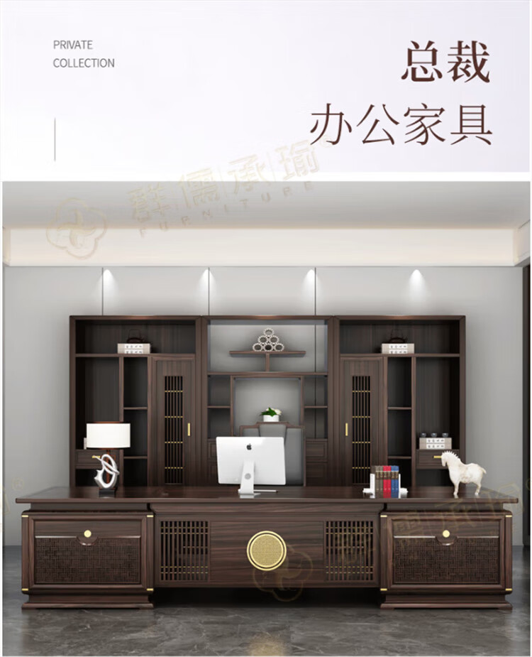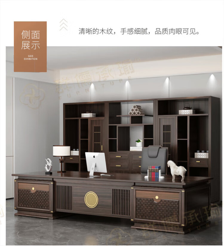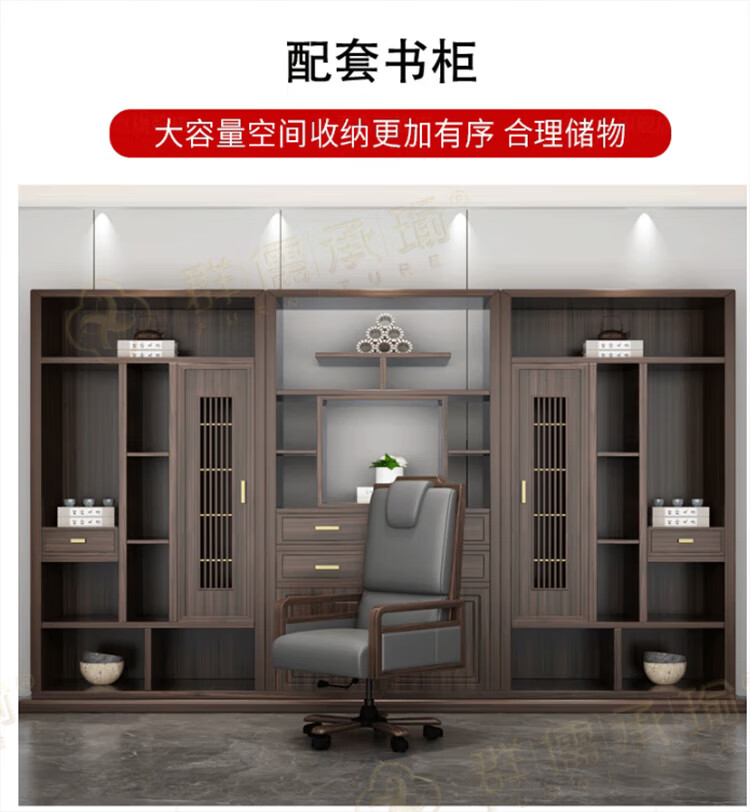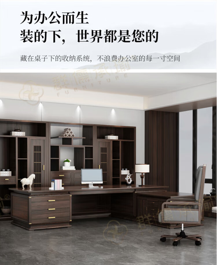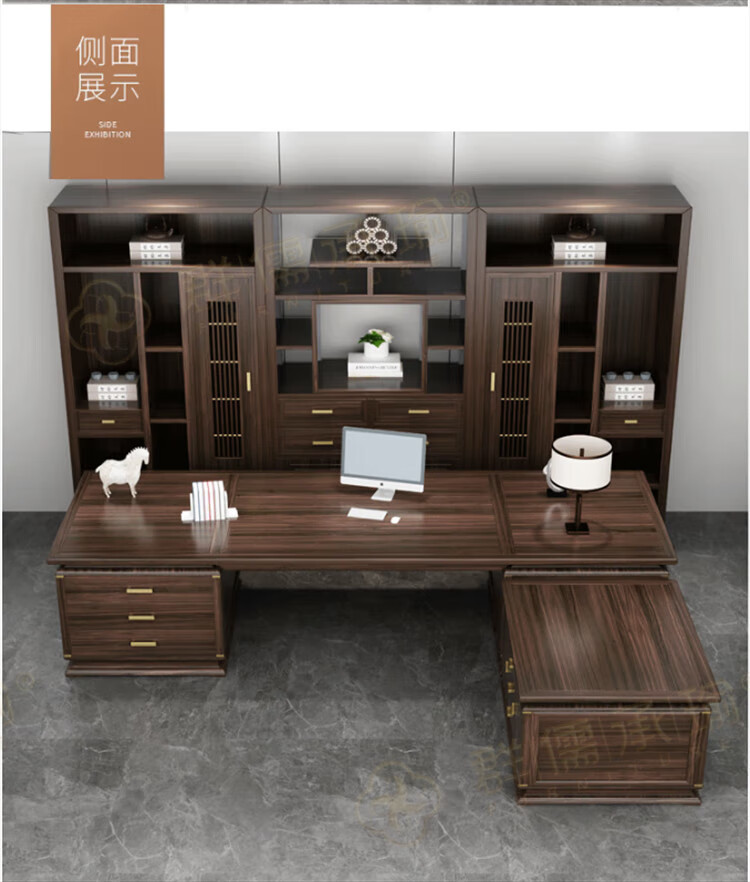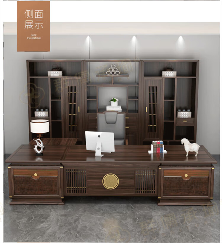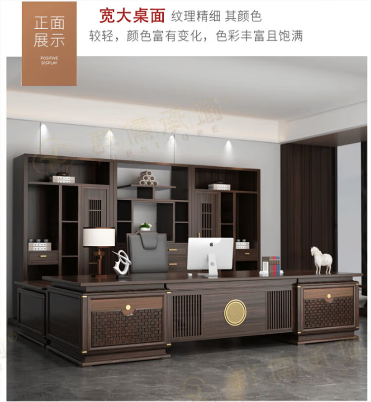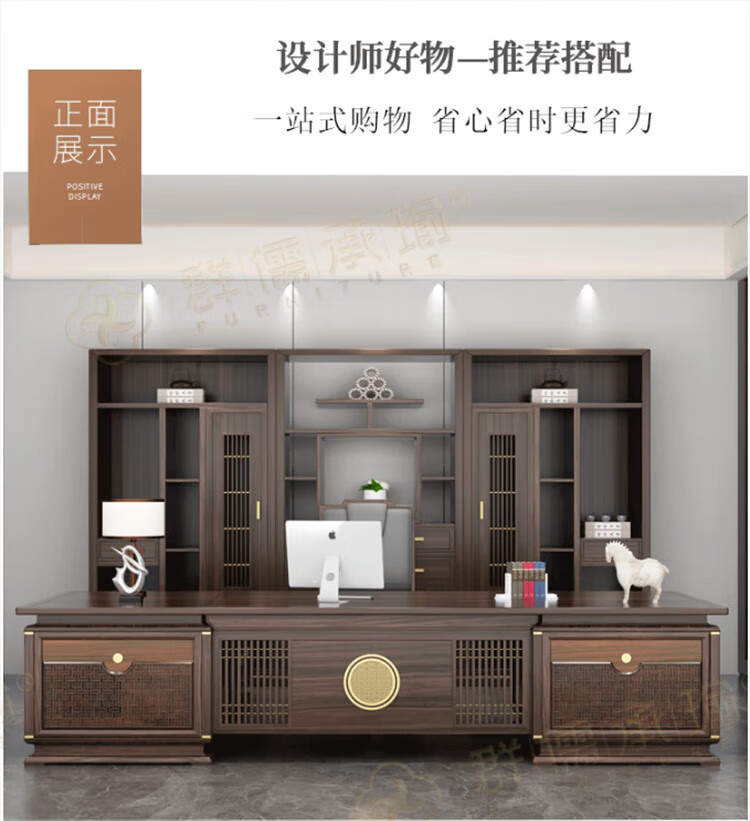 Qunru Chengyu (JEFUISML) solid wood boss desk desk new Chinese style simple executive desk president supervisor desk North American ash wood office boss chair