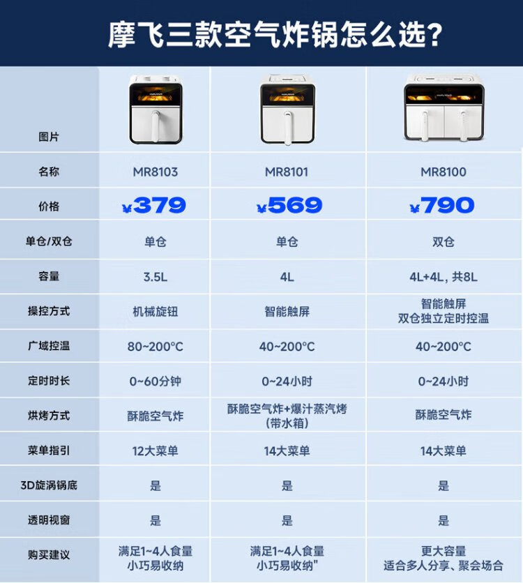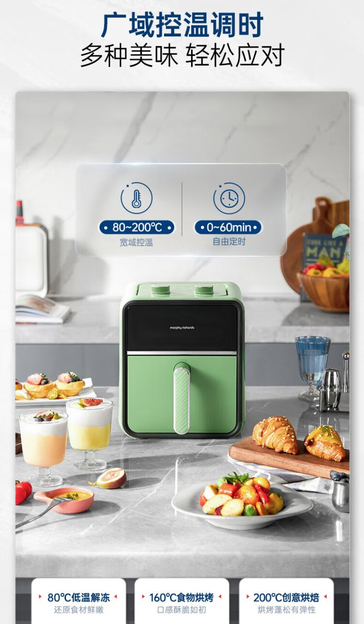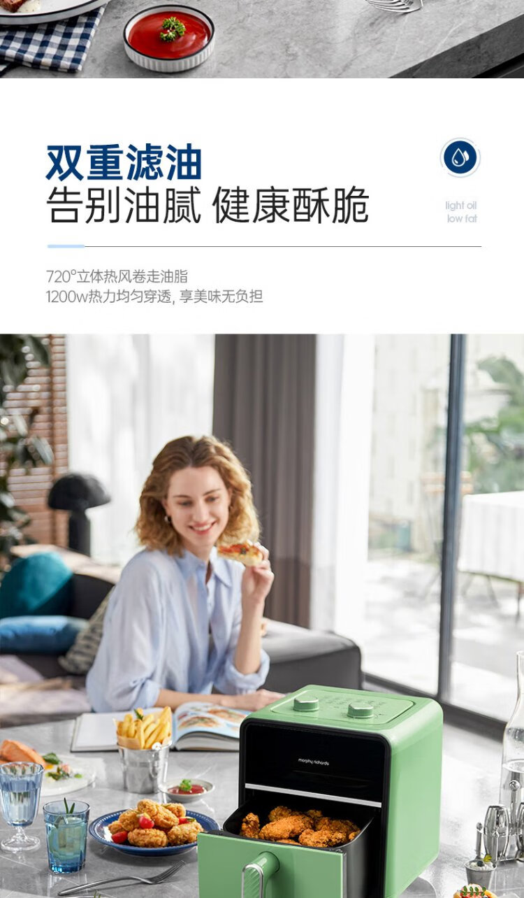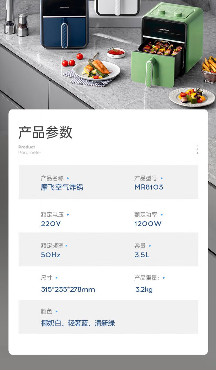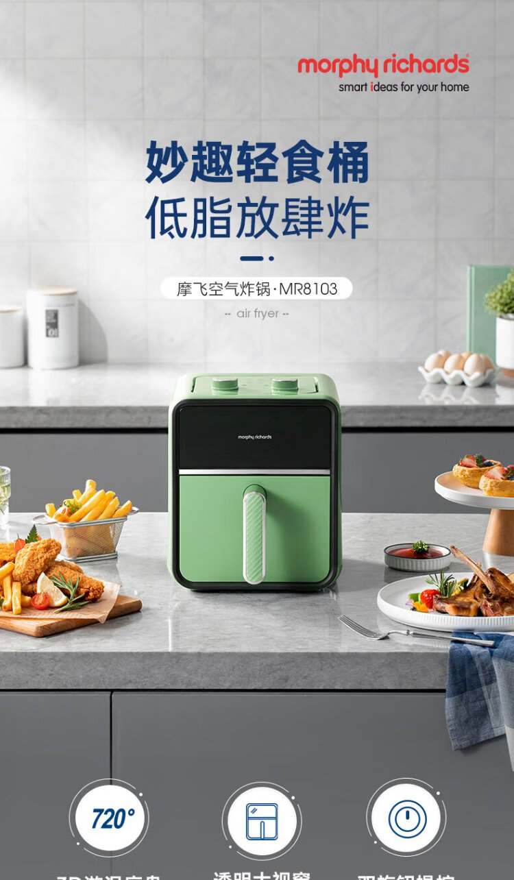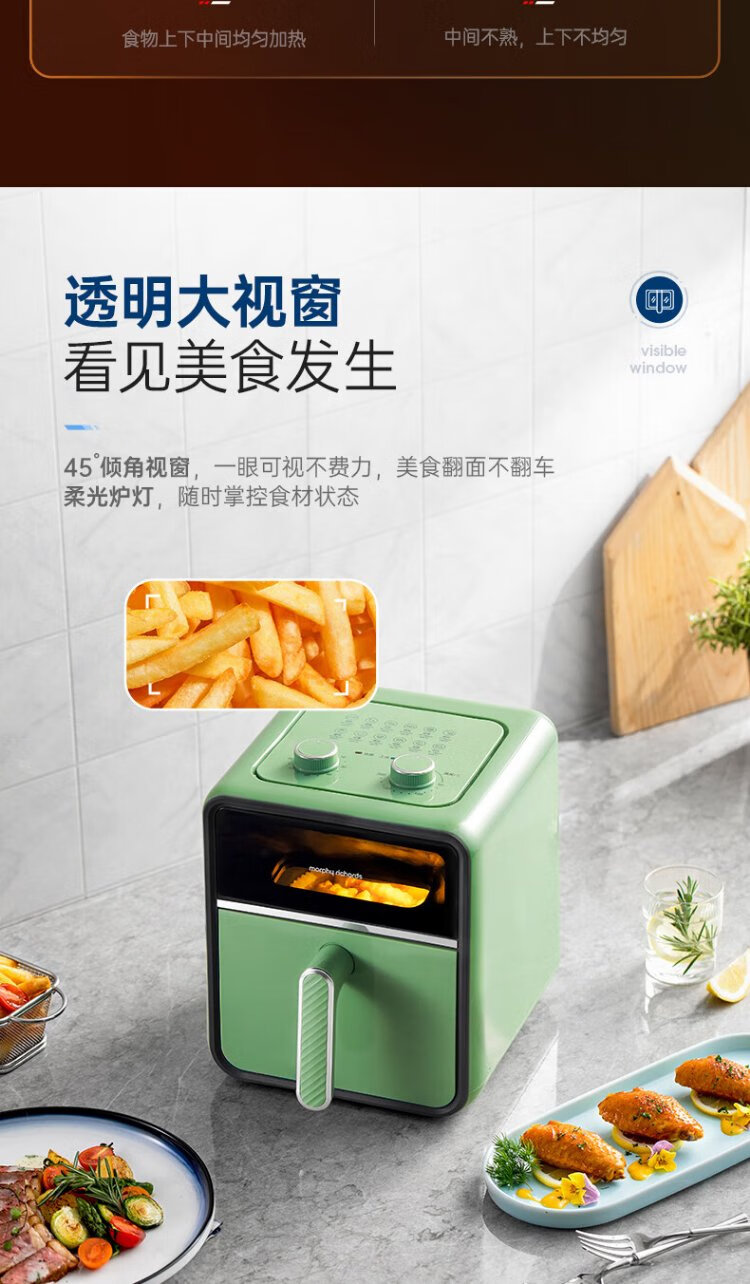 Morphyrichards Air Fryer Household Multifunctional Oven Low Oil Light Fat Electric Fryer Fully Automatic Transparent Visual French Fries Machine Fryer MR8103 Fuji White 3.5L