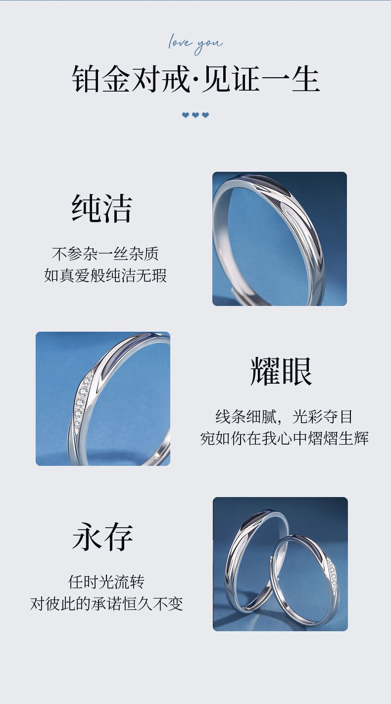MZMZ platinum pair of rings to share the love together Pt950 couple ring platinum confession proposal birthday anniversary gift light luxury model to share the love together the pair of rings