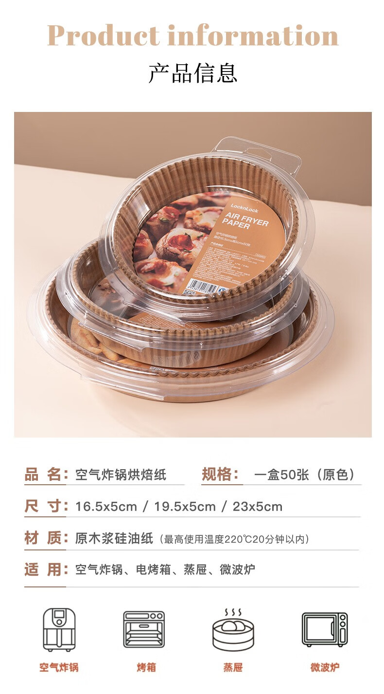LOCK&LOCK air fryer paper tray barbecue plate oil-absorbing paper cake baking silicone paper tin foil non-stick camping food mat extra large - thickened for 7-10 liter fryer