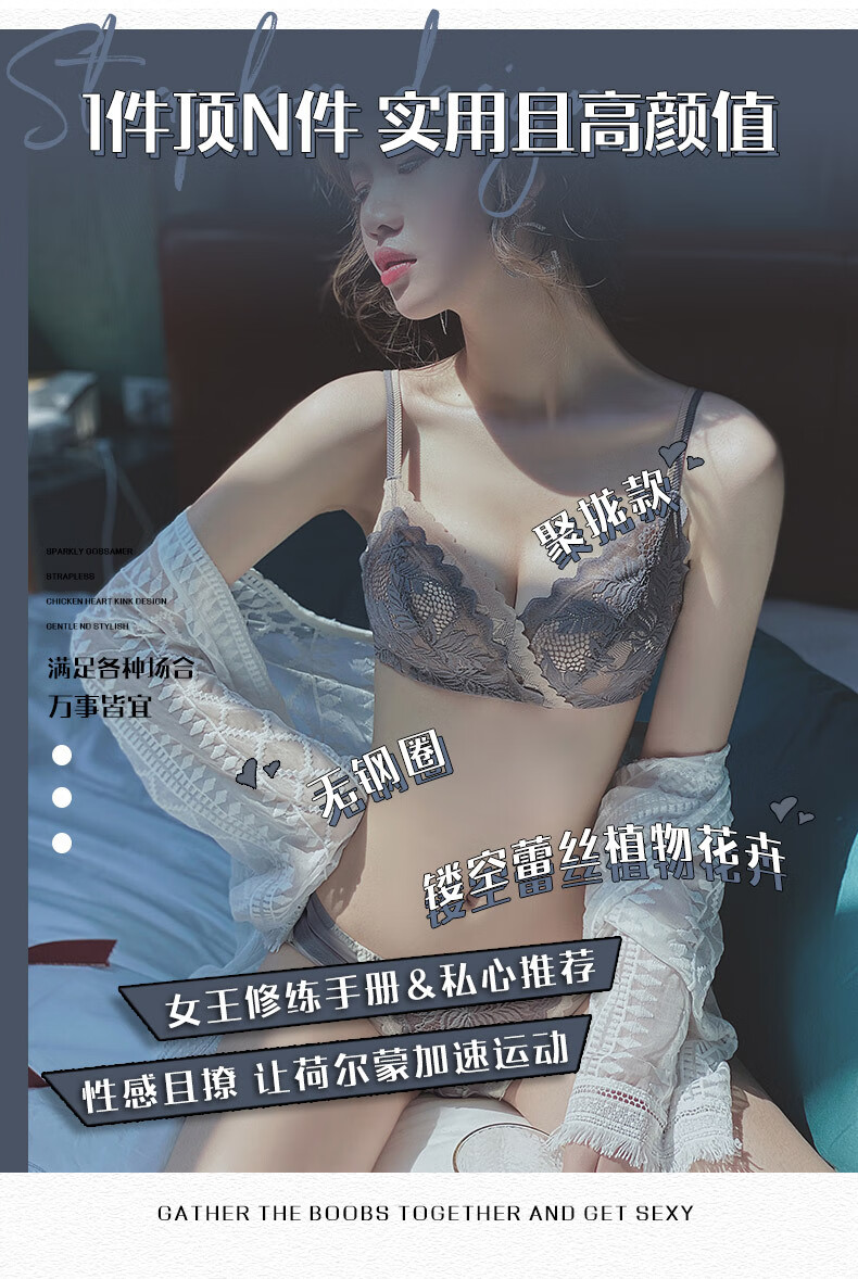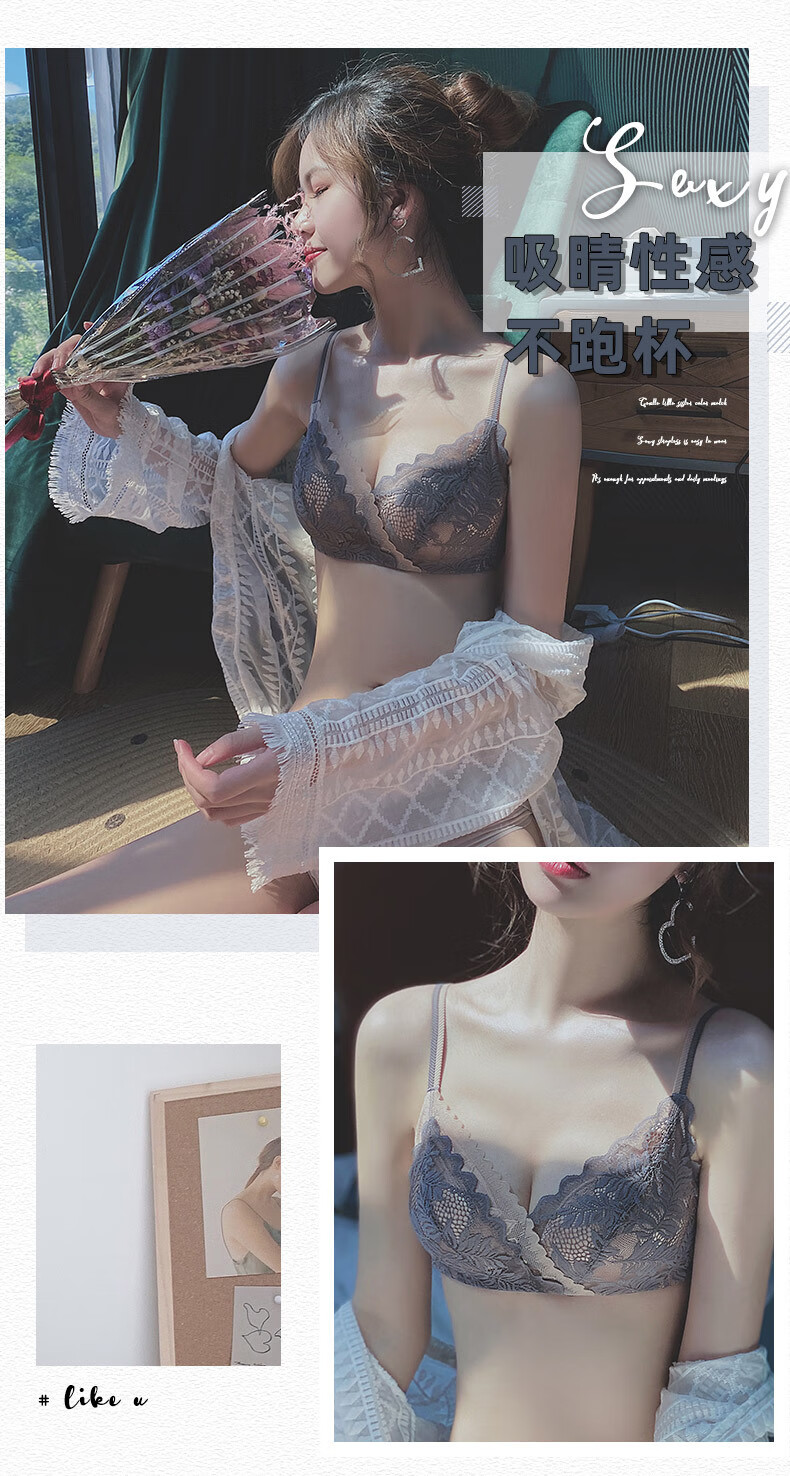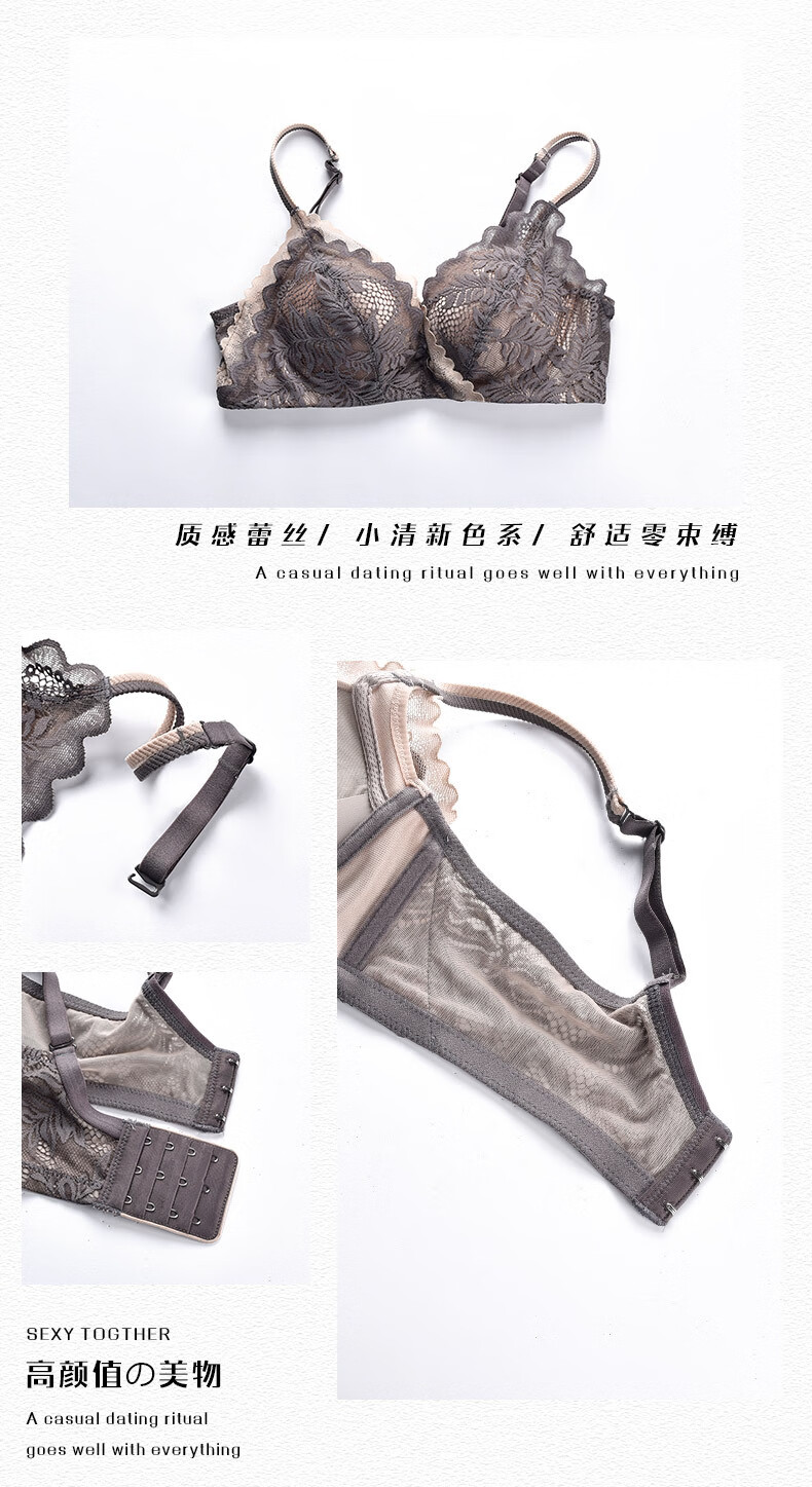Adore Autumn, Summer, Autumn and Winter Sexy Breathable Lace Bra, Comfortable Small Breast Gathering, No Wire Rings, Side Breast Retracting, Thickened Underwear for Women, Black Suit 34/75 AB Tong Cup