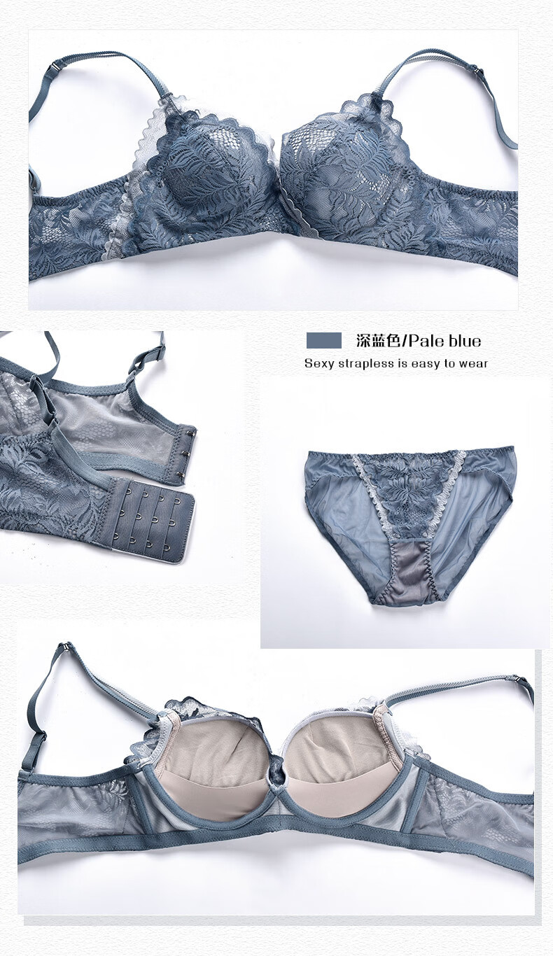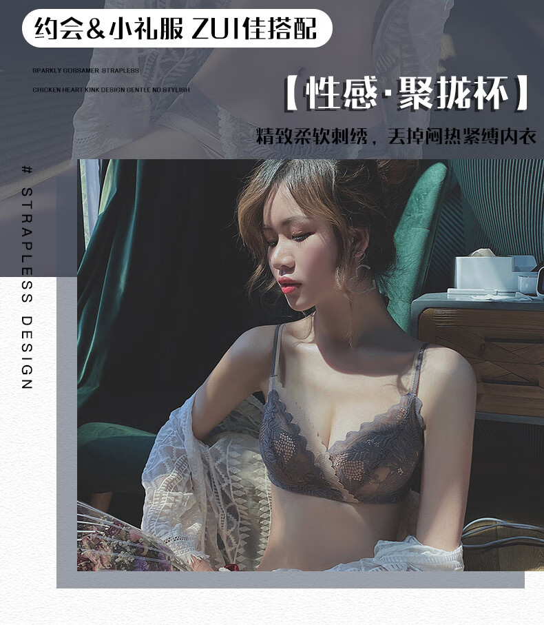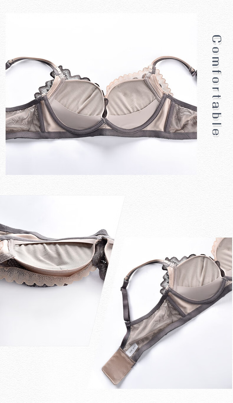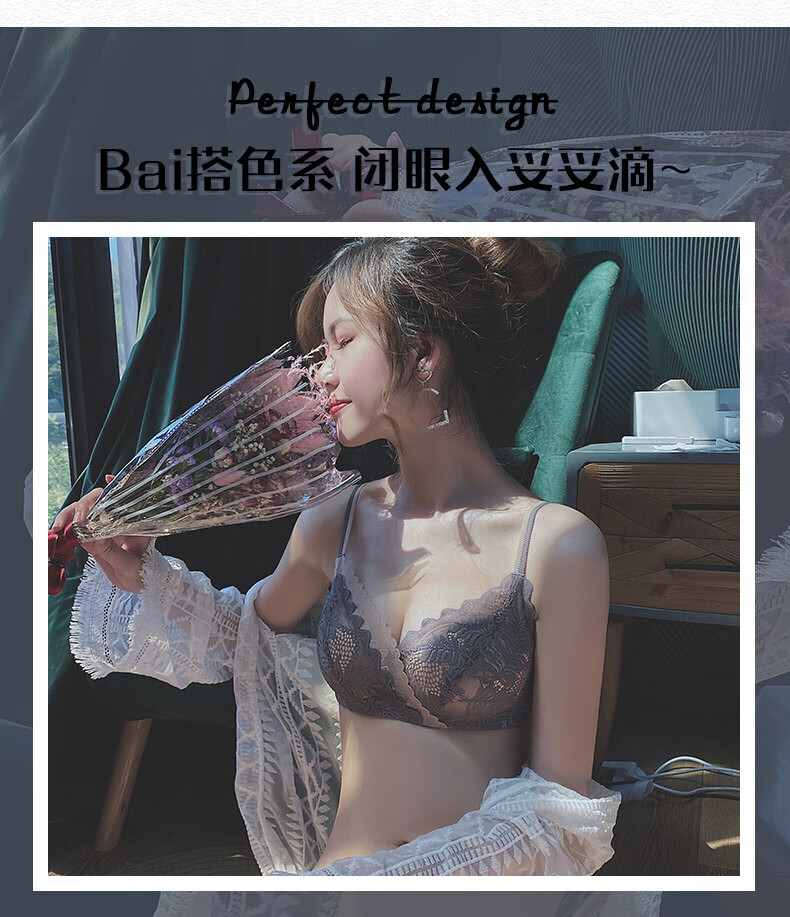 Adore Autumn, Summer, Autumn and Winter Sexy Breathable Lace Bra, Comfortable Small Breast Gathering, No Wire Rings, Side Breast Retracting, Thickened Underwear for Women, Black Suit 34/75 AB Tong Cup