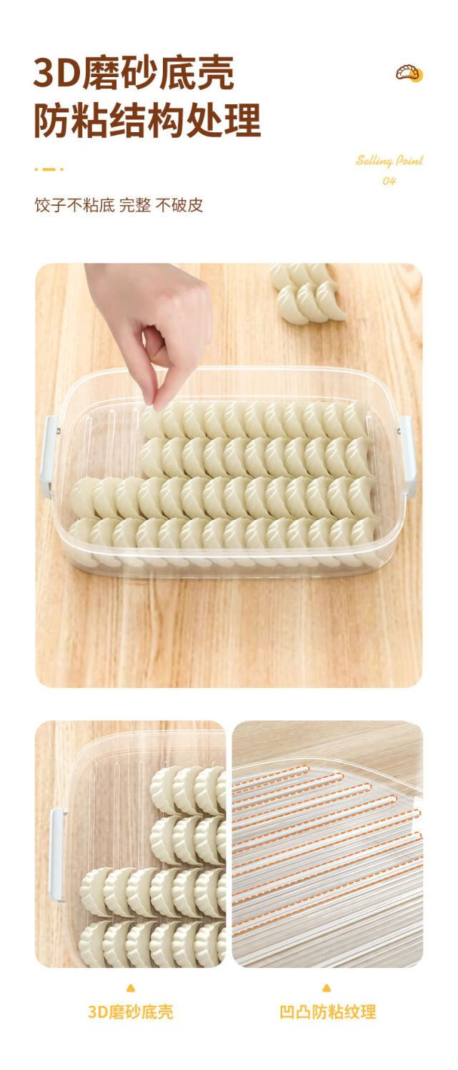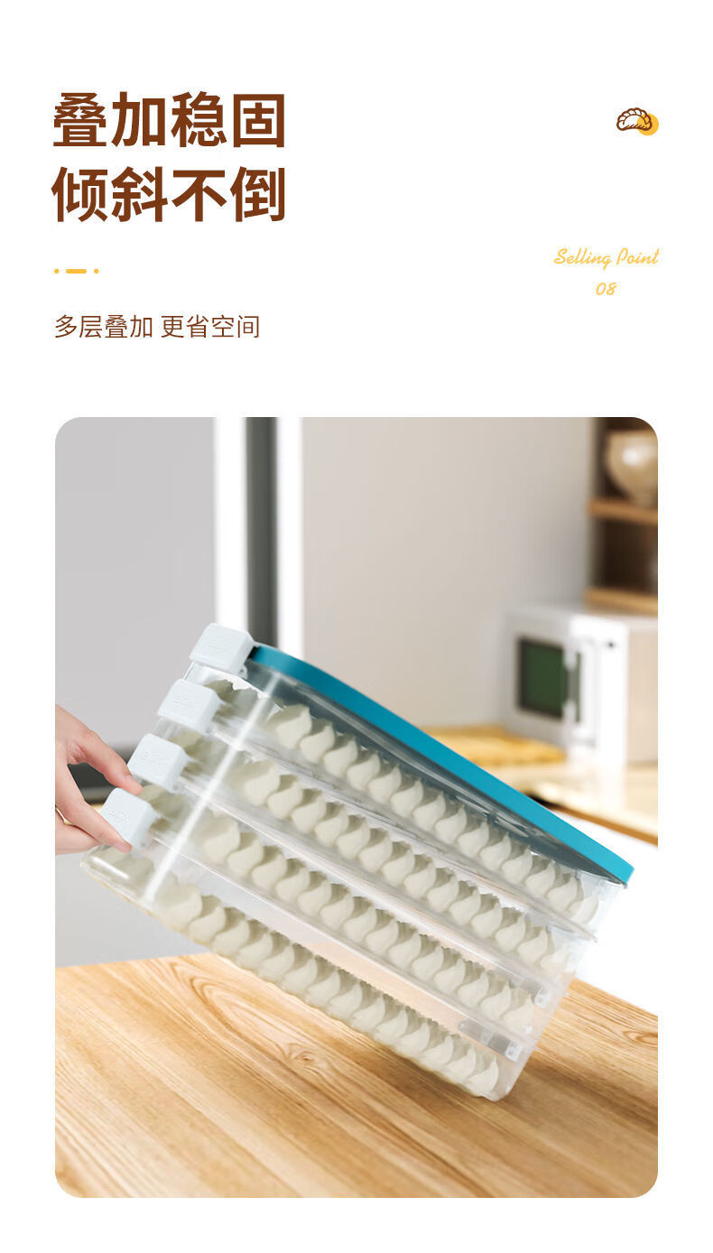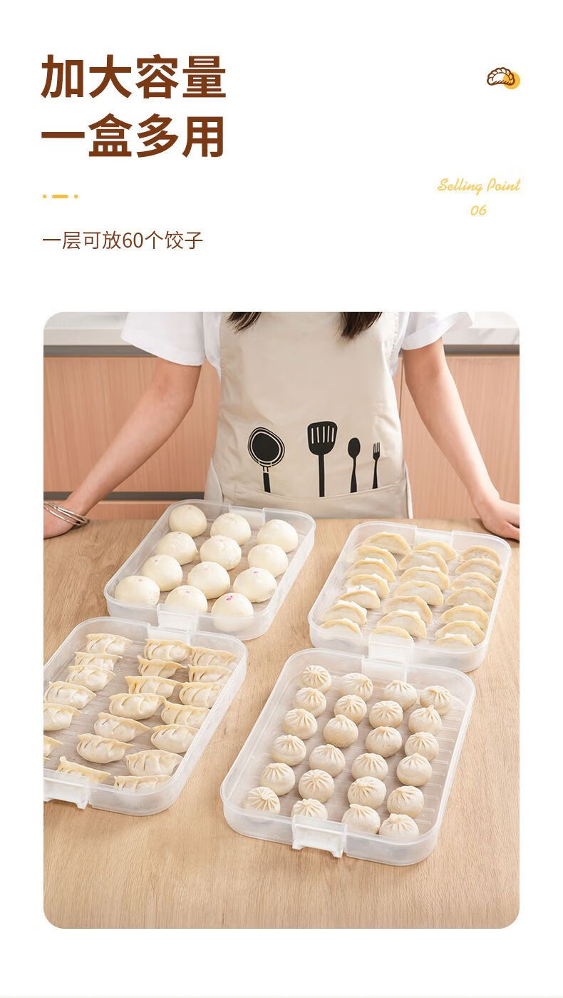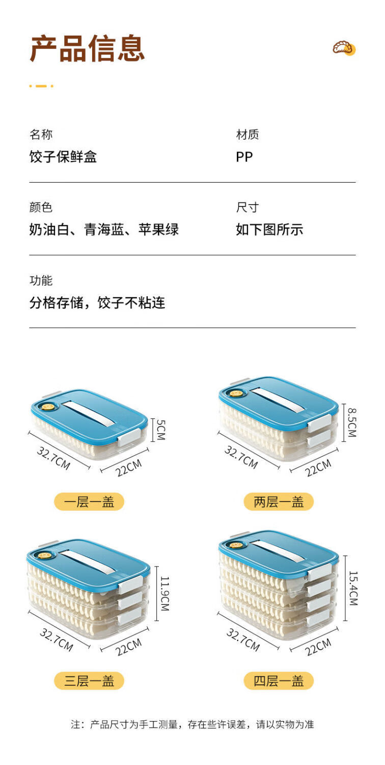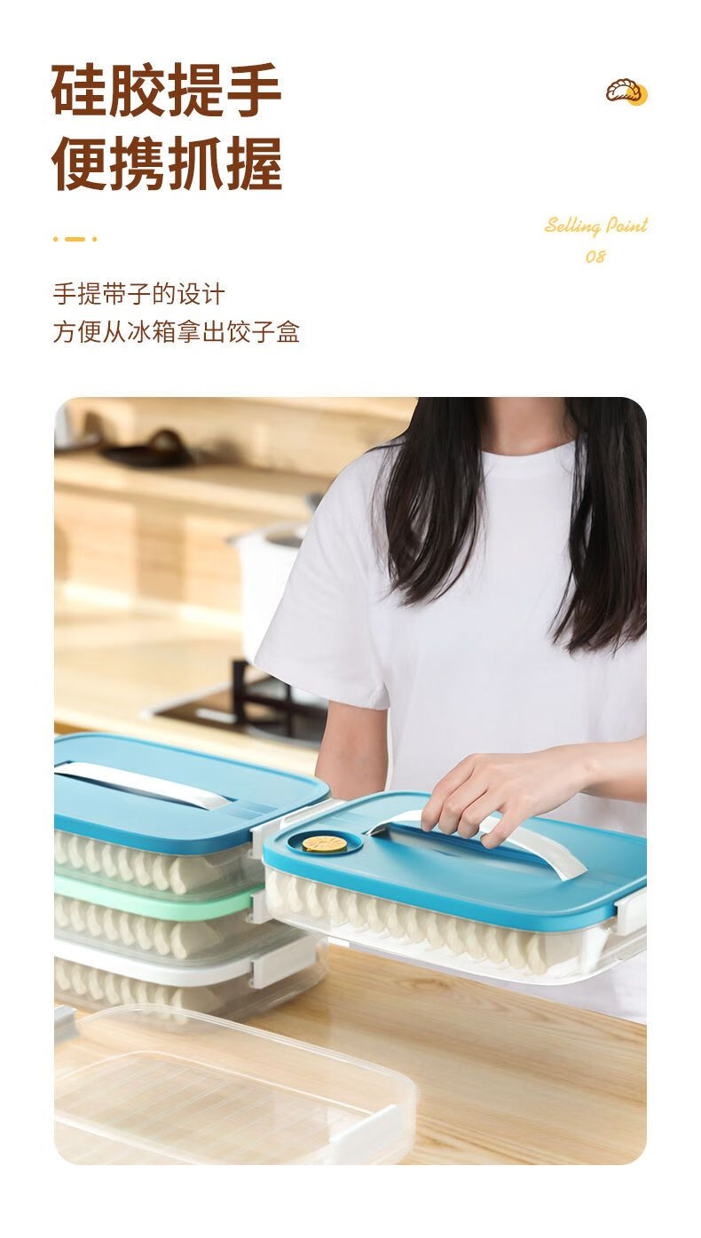 Jie Yintong dumpling storage box, large-capacity 4-layer quick-frozen wonton crisper tray, multi-layer household kitchen refrigerator, one layer, one cover, holds about 60 dumplings, blue, keeps fresh without odor/records storage date