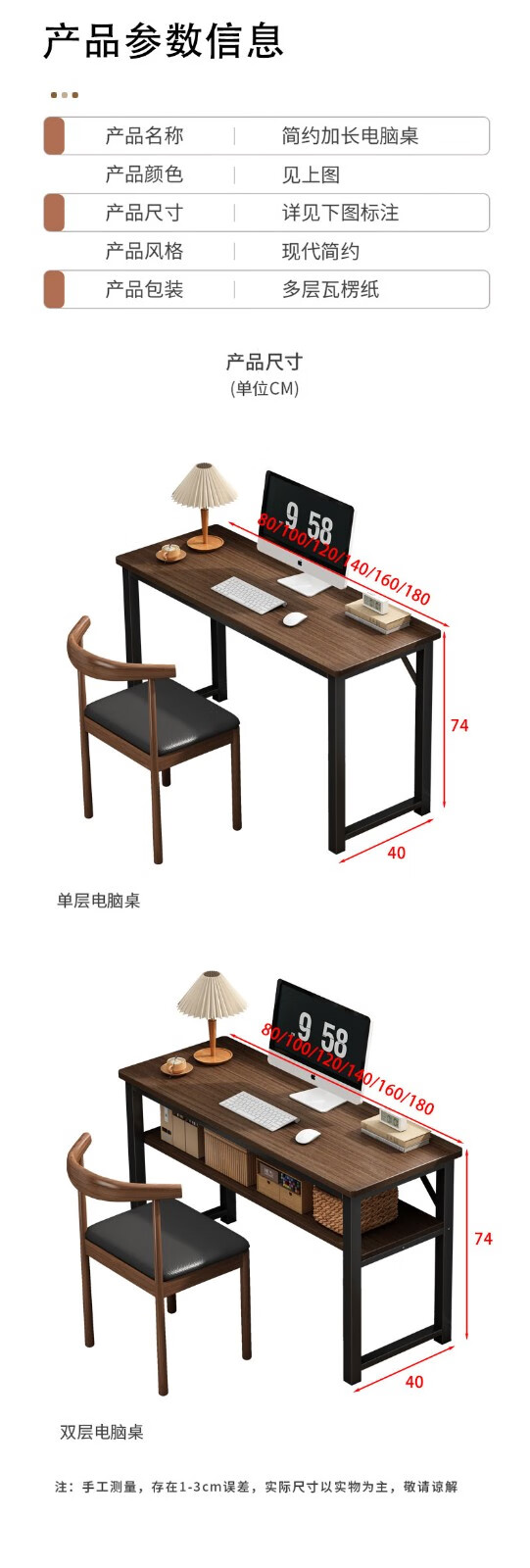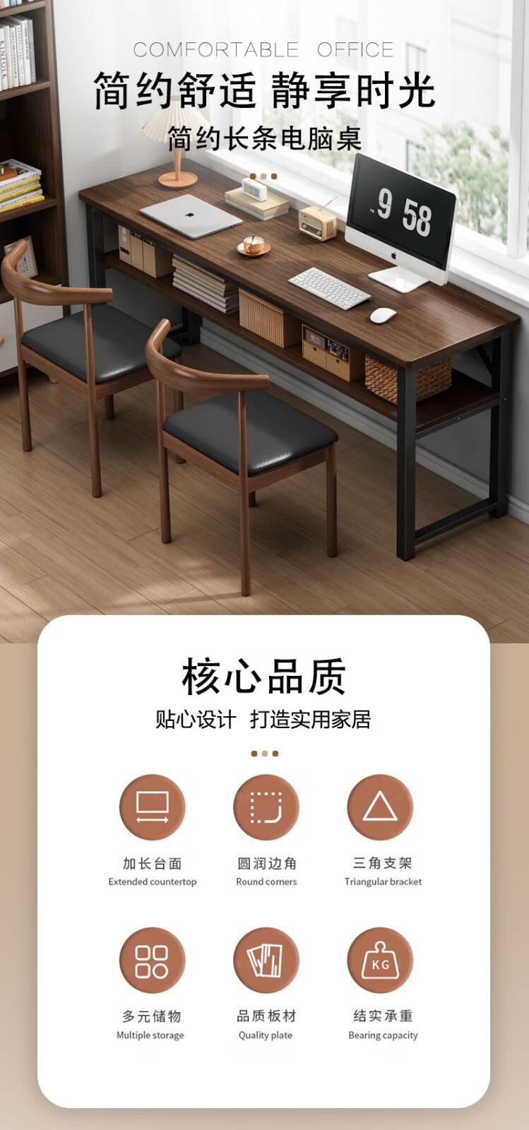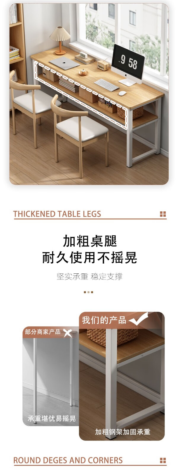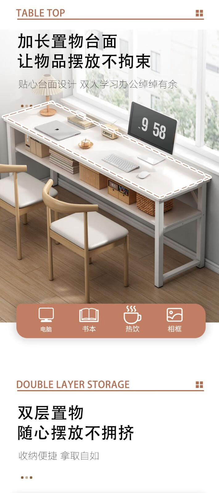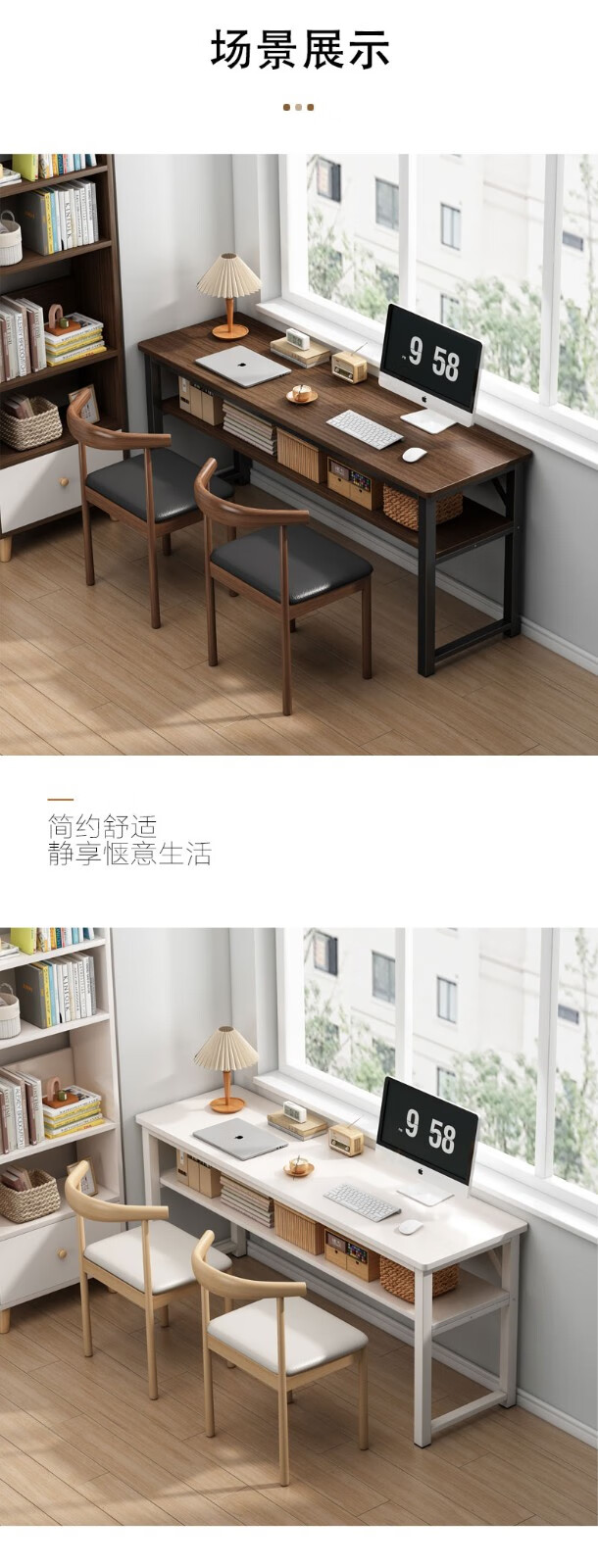 Min Yu Long Table Narrow Table Home Long Table Work Table Simple Desk Simple Computer Desk Writing Desk Rectangular Table Double Layer Warm White + White Frame 120cm