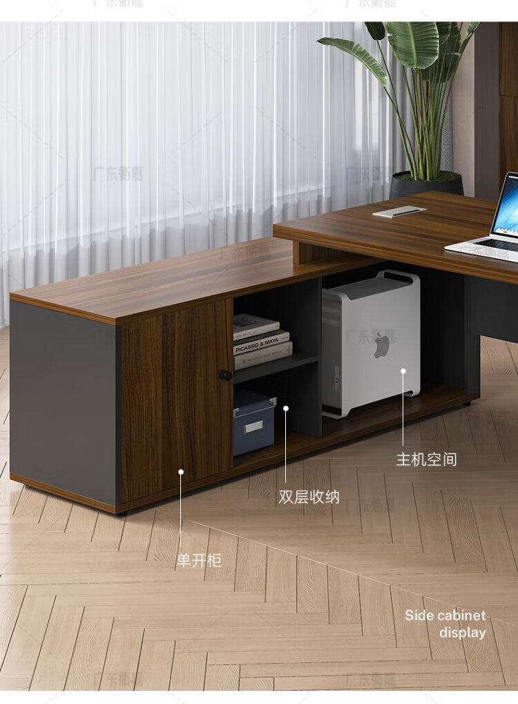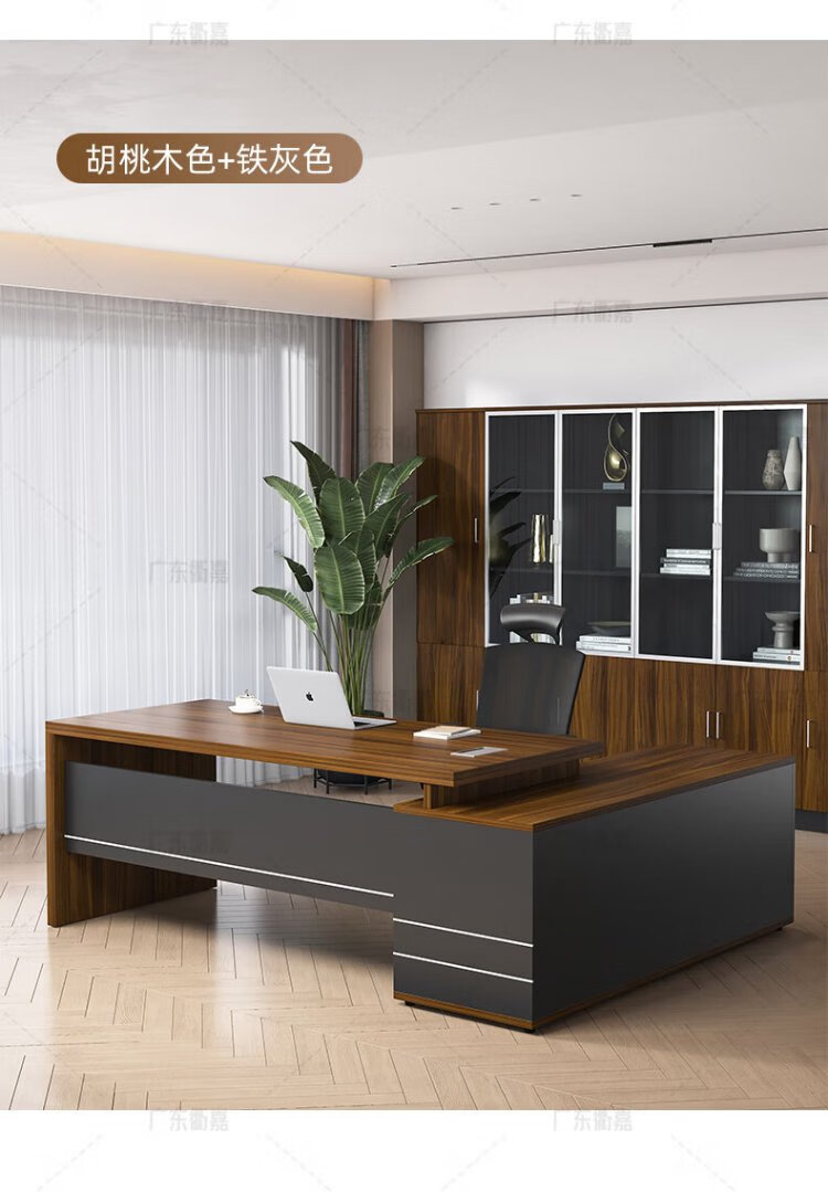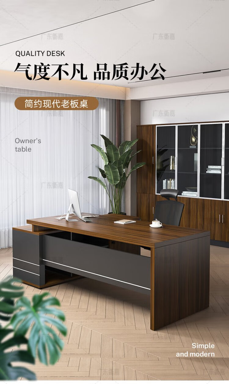 Qujia Office Boss Desk Modern Simple Office Furniture Single Executive Desk President Desk and Chair Combination 1.8 Meter Table Red Walnut + Iron Gray
