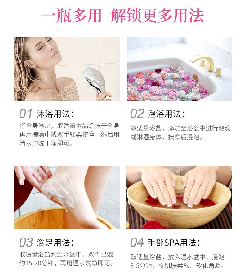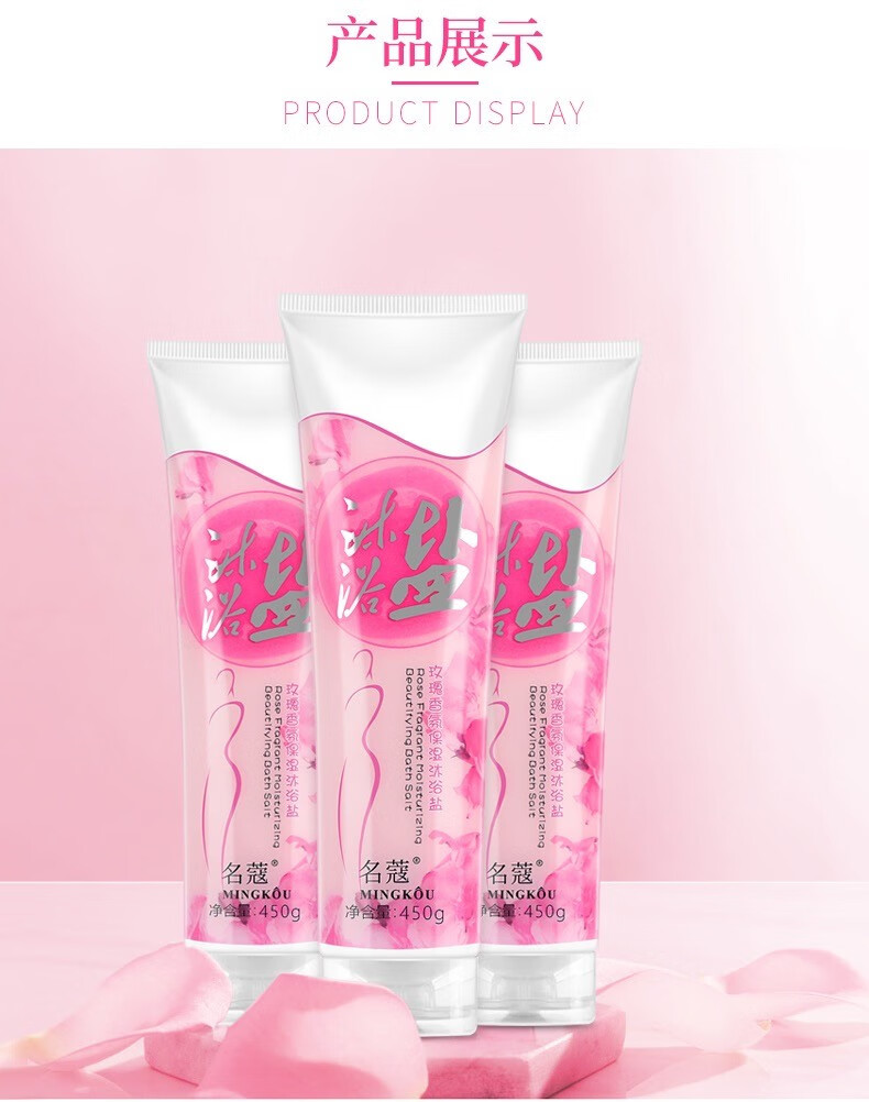 MINGKOU Rose Moisturizing Bath Salt 450g Body Scrub Deep Cleansing, Moisturizing, Soothing, Refreshing, Smooth, Unisex 450g 1 Stick Mingkou Rose Bath Salt