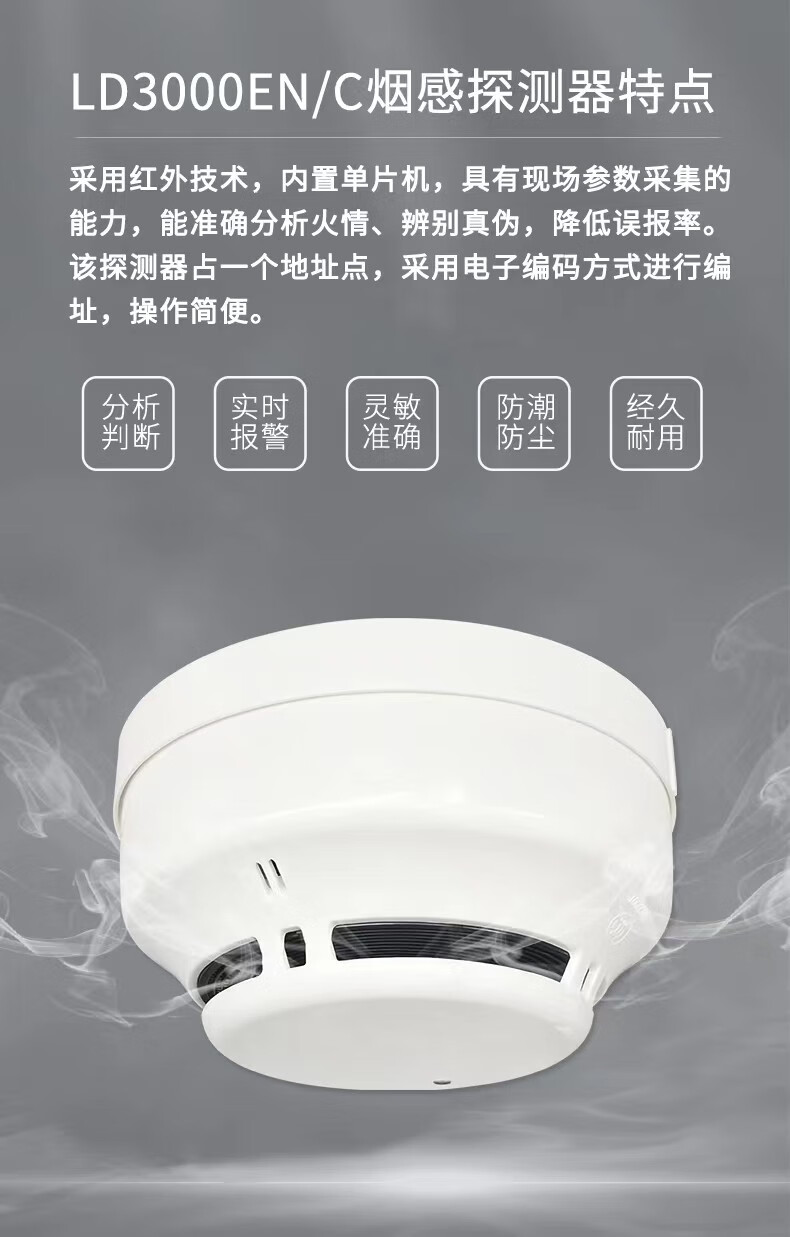 Beijing Lida smoke alarm LD3000EN/C point type photoelectric smoke fire detector Lida smoke detector with base