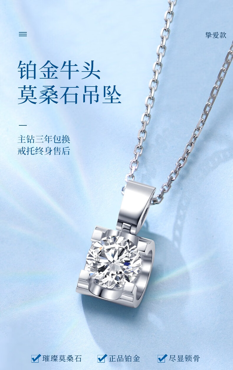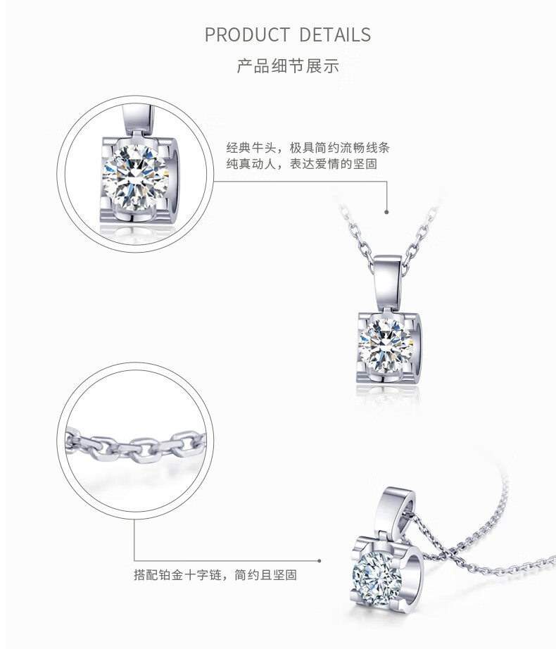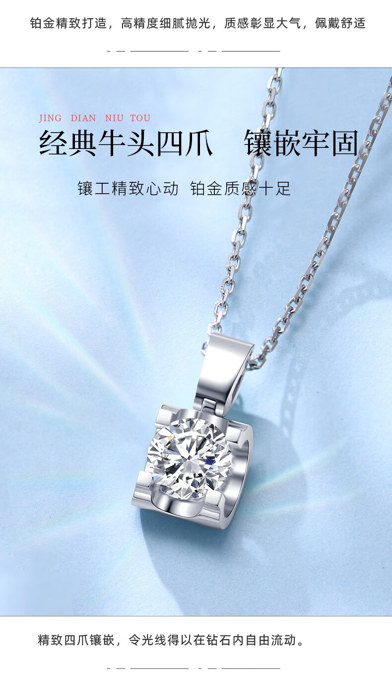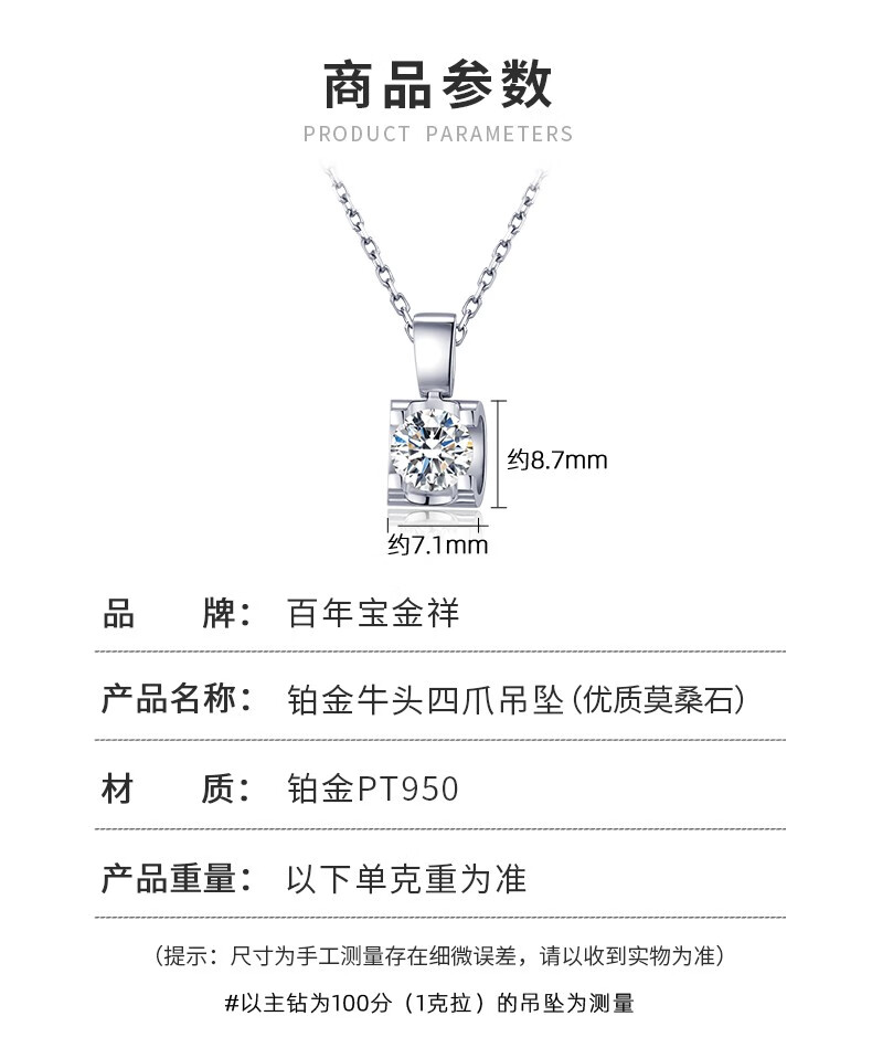 Centennial Baojinxiang platinum necklace for women pt950 platinum diamond pendant moissanite clavicle chain birthday Valentine's Day gift for girlfriend (about 5.4-5.6 grams) bull head pendant + platinum necklace