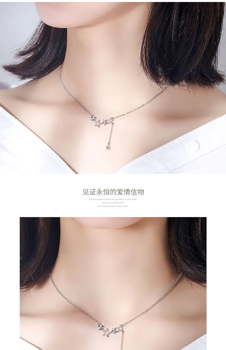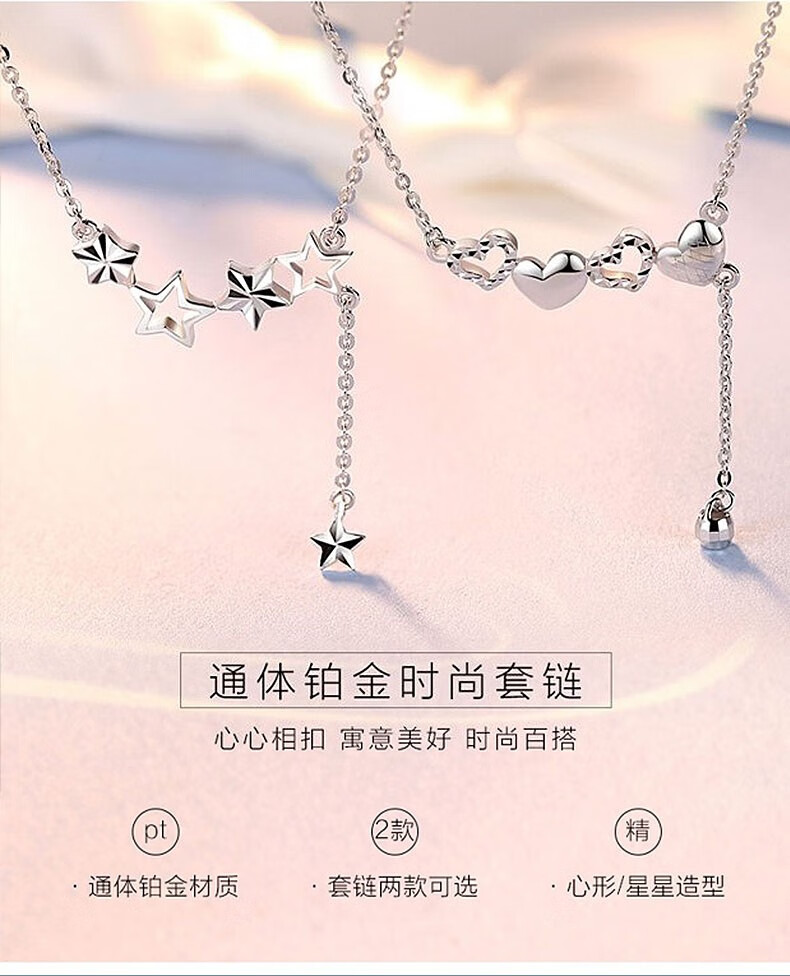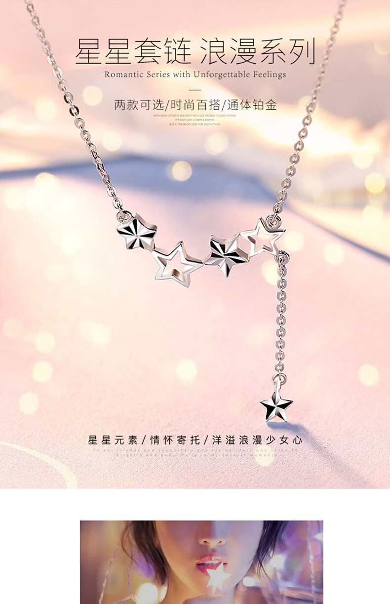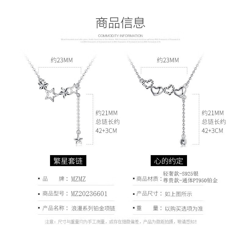 MZMZpt950 Platinum Necklace Female Star Platinum Necklace Love Clavicle Chain Chinese Valentine's Day Gift for Girlfriend Light Luxury Style - Starry Stars Free Engraving Exquisite Gift Box