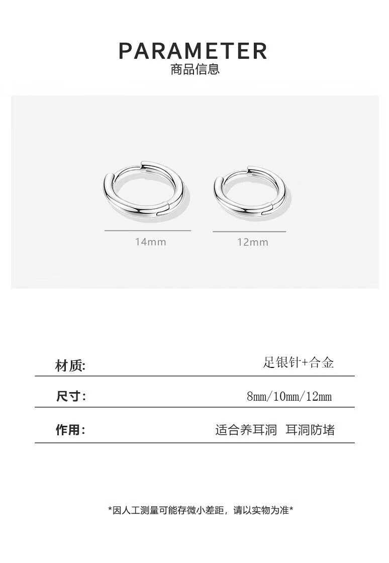 Yinyu simple silver needle earrings, high-end ear bone nails, no-picking earrings for sleeping, female birthday gifts for girlfriends, a pair of 12mm earrings, suitable for earlobes