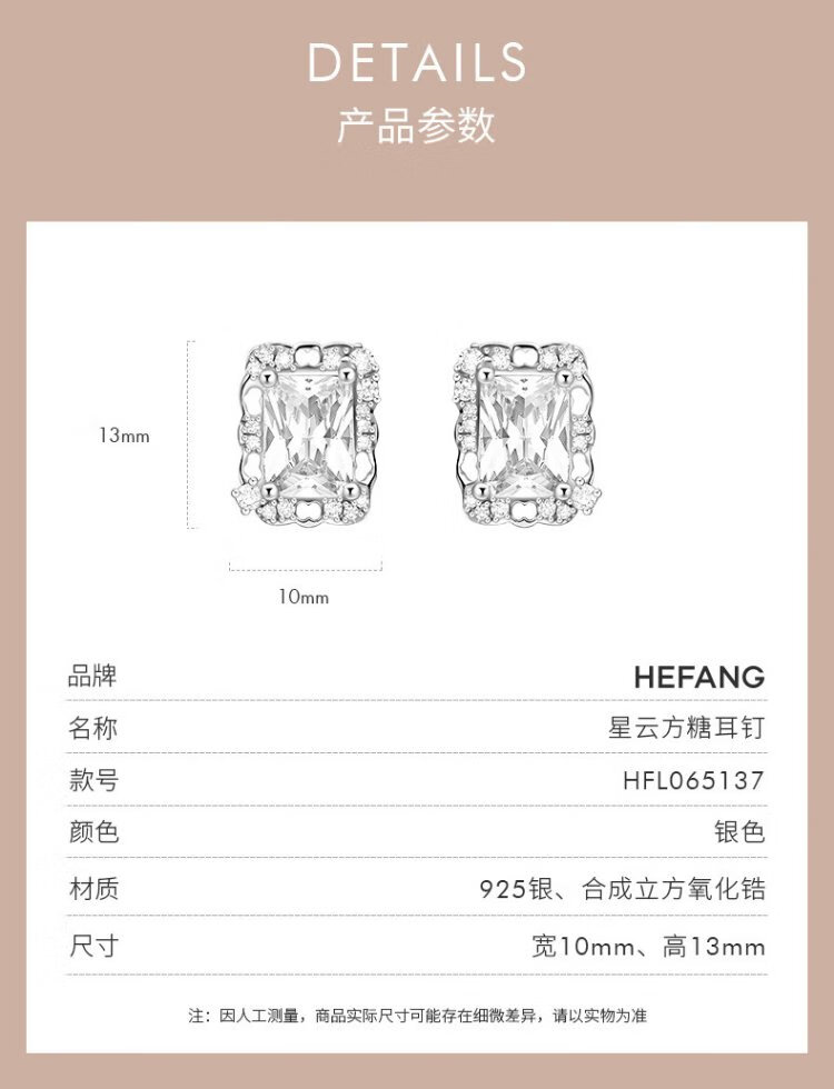 HEFANG Hefang Jewelry Nebula Sugar Cube Earrings Silver Earrings Women's Light Luxury High-end Birthday Gift for Girlfriend Silver