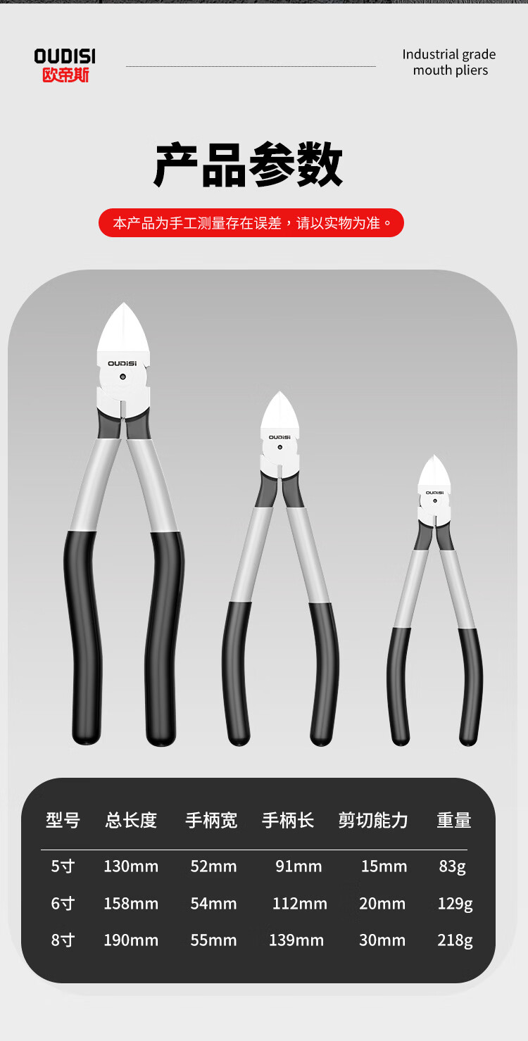 Otis water mouth pliers household diagonal pliers Gundam model electronic scissors spring diagonal tool plastic tie scissors 5-inch water mouth pliers