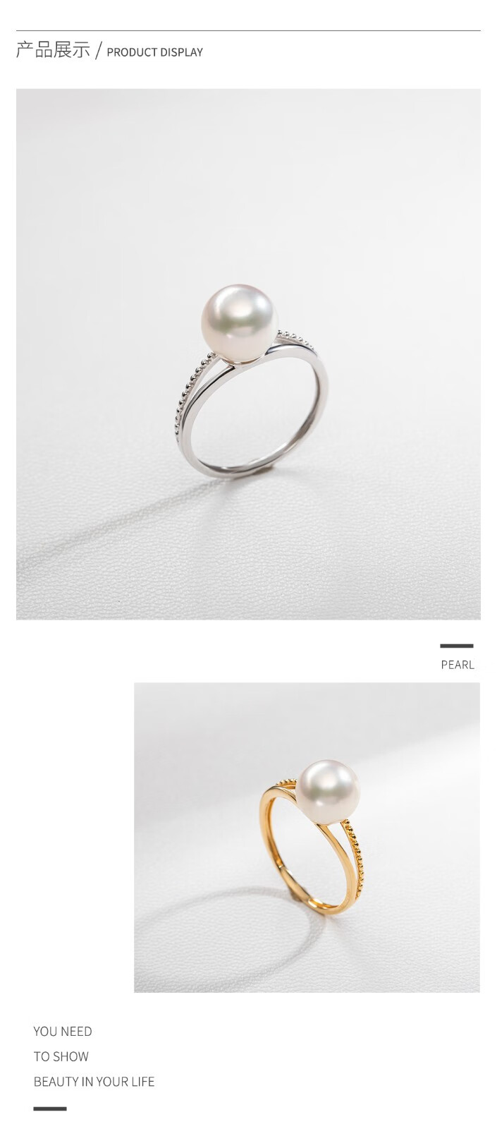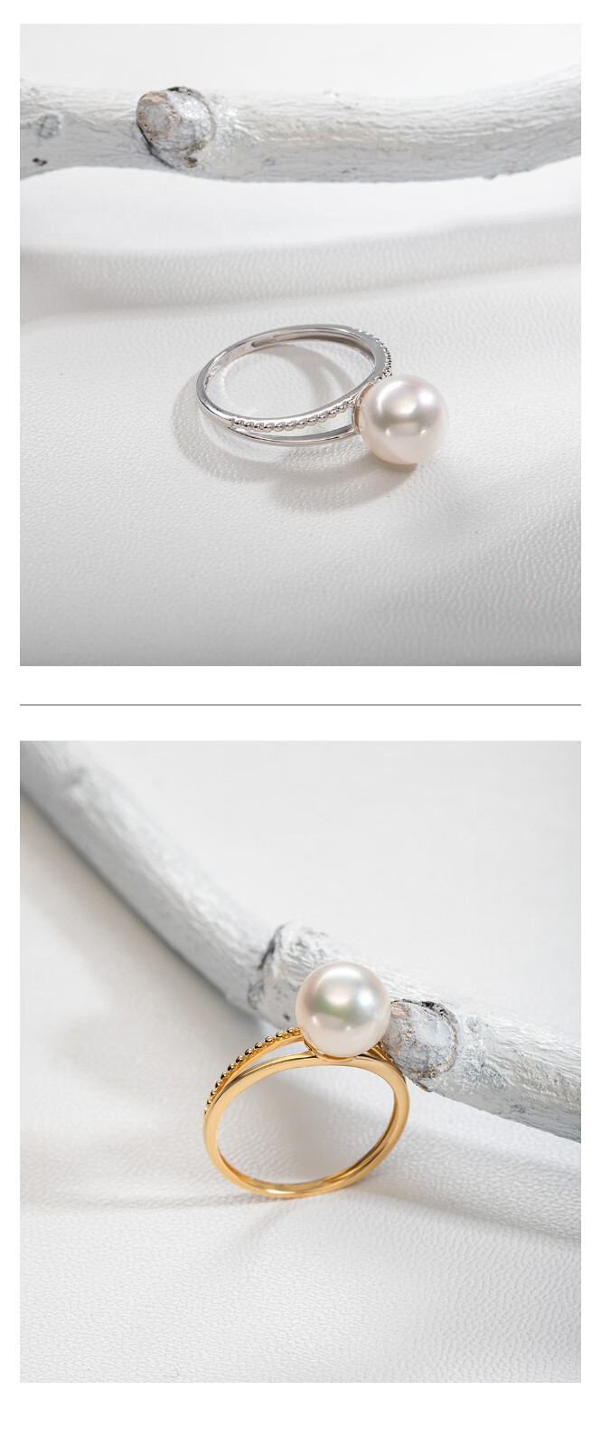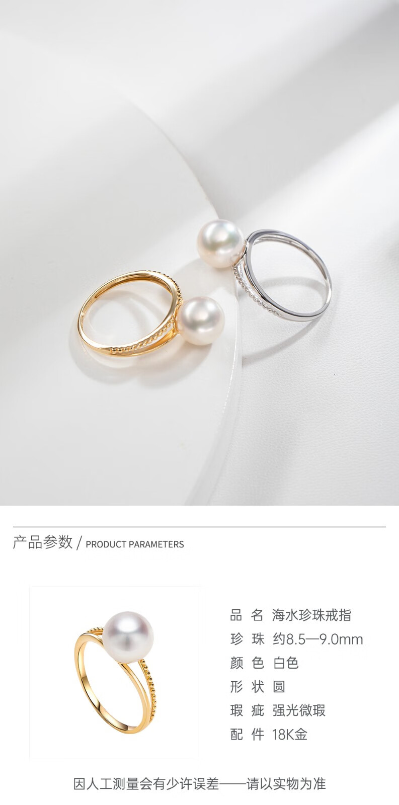 Nanzhu Palace 18K gold inlaid diamond seawater pearl ring AKOYA round strong light women's ring 18K gold 8.5-9.0mm
