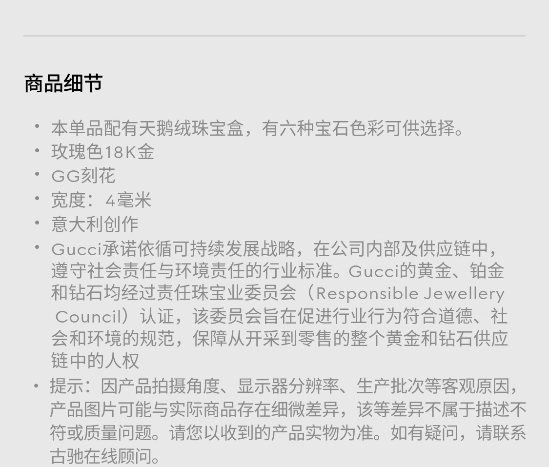 GUCCI Gucci Icon Series 18K Rose Gold Slim Ring Rose 18K Gold 20