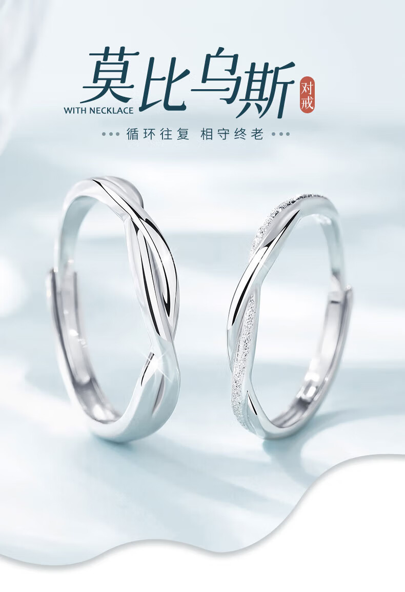 China Gold (CHINA GOLD) Pure Silver Couple Ring A Pair of Möbius Silver Rings for Girls Birthday Gifts for Girlfriend and Wife Wedding Anniversary Möbius Rings for Couples Rings Jingsuda