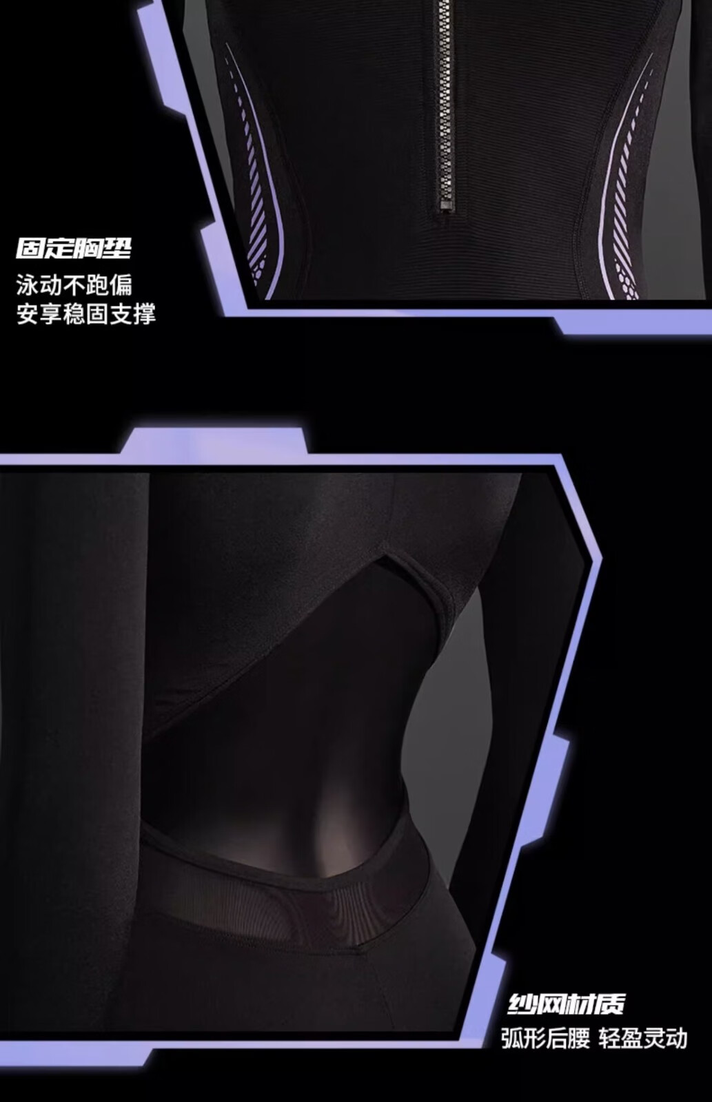 Speedo electrical matrix black label Hero4.0 replica sharkskin series long-sleeved one-piece boxer anti-chlorine quick-drying swimsuit black/purple S