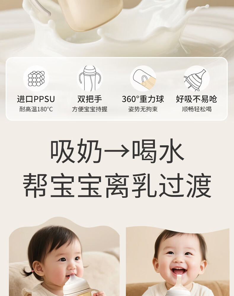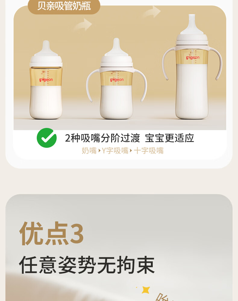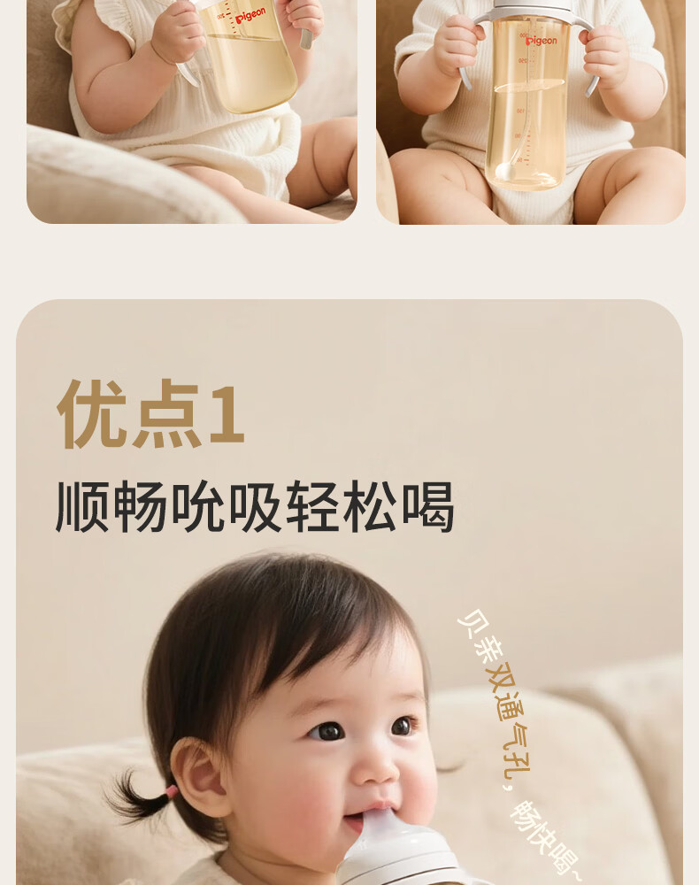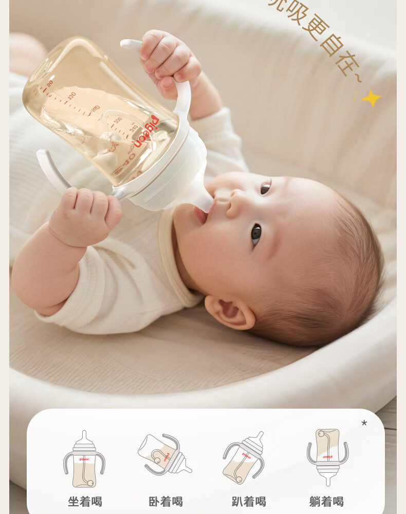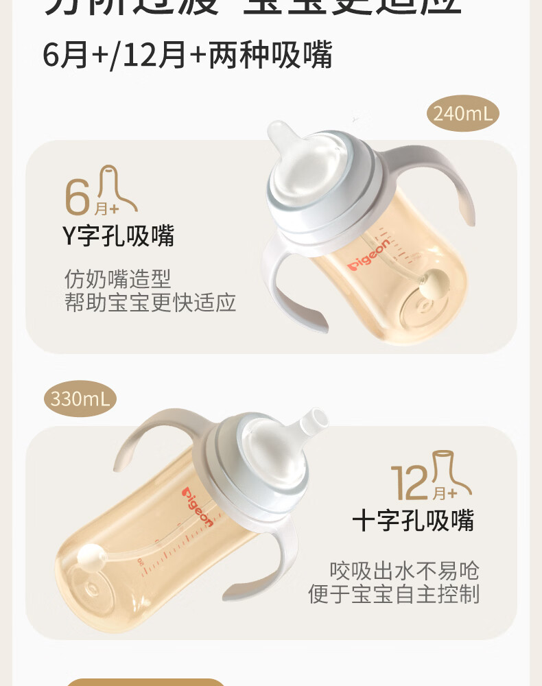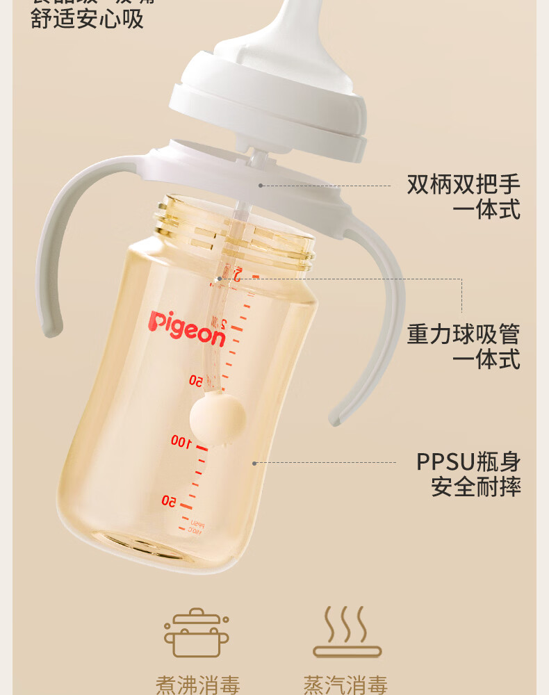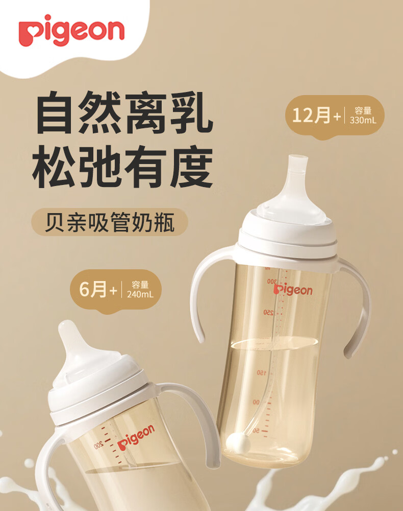 Pigeon feeding bottle ppsu straw feeding bottle gravity ball feeding bottle over one year old natural weaning feeding bottle double handle large capacity 330ml over one year old