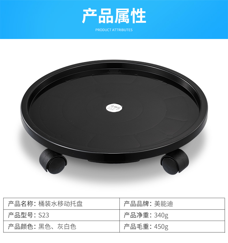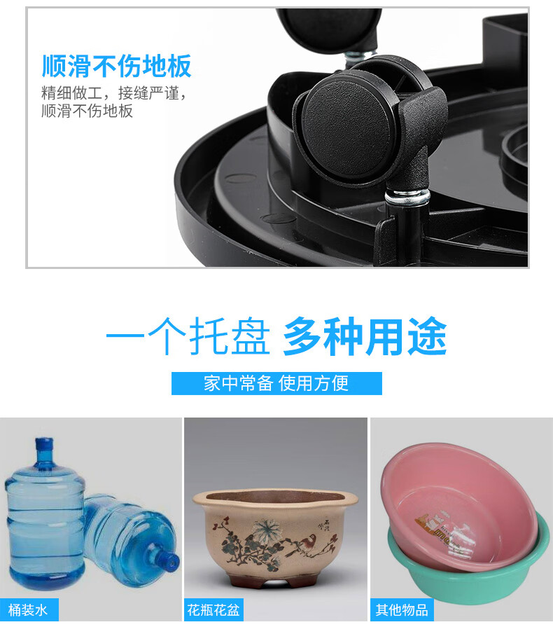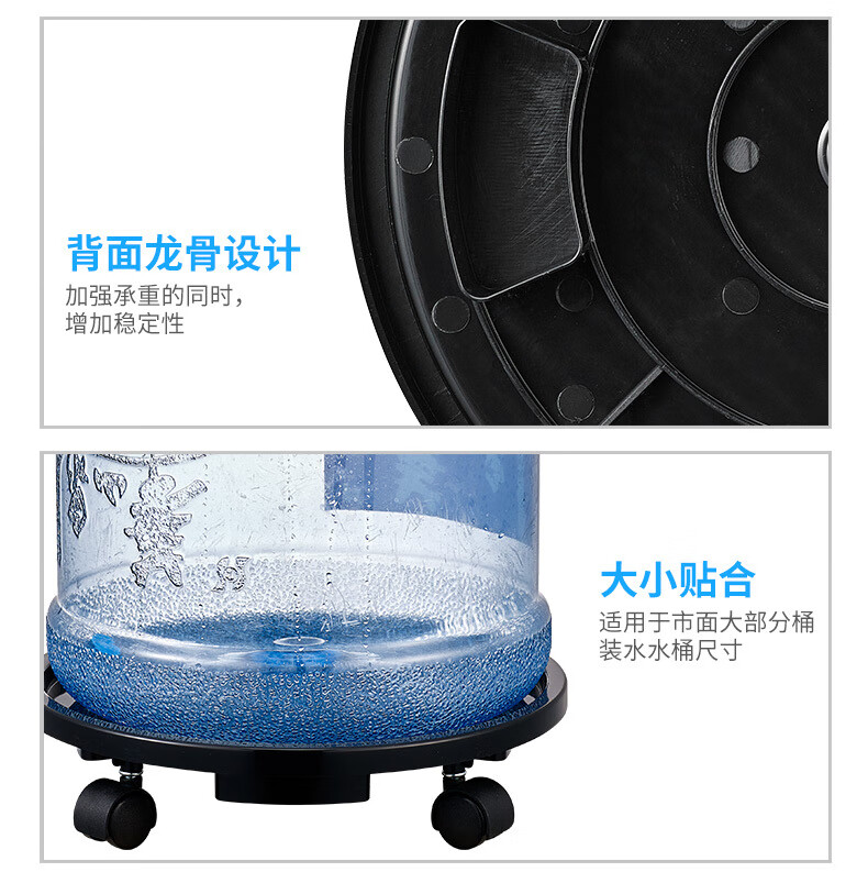 Mansihe bottled water movable tray pure water barrel mineral water barrel movable tray universal wheel roller black movable tray_inner diameter 26.3CM