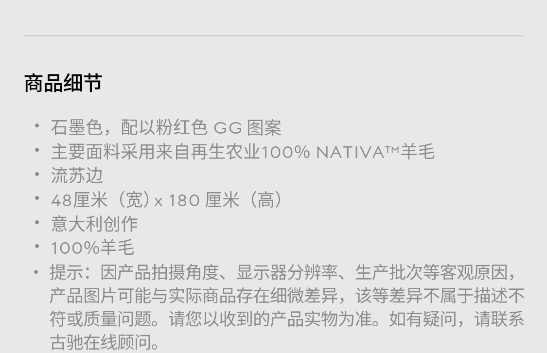GUCCI Gucci GG jacquard pattern knitted women's wool double-sided scarf graphite color one size