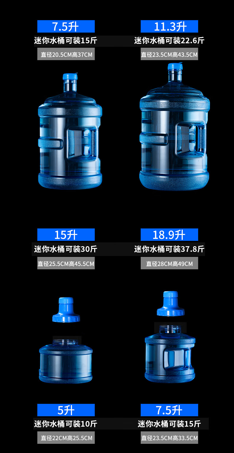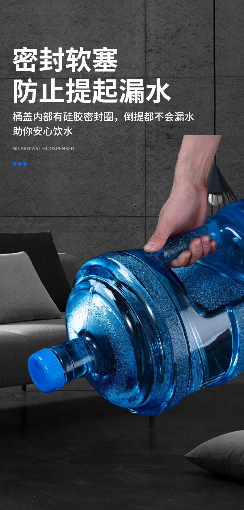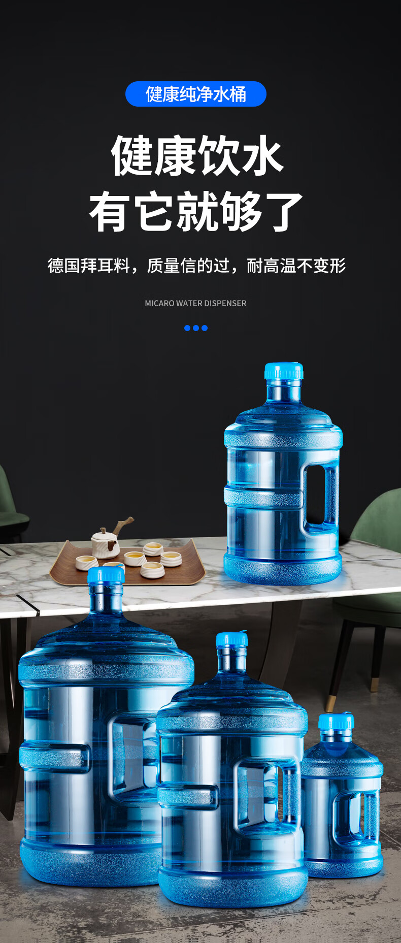 Food grade pure water bucket plastic household portable water dispenser bucket thickened with lid large water storage mineral water bucket white pc thickened handle QS certification 5000ml