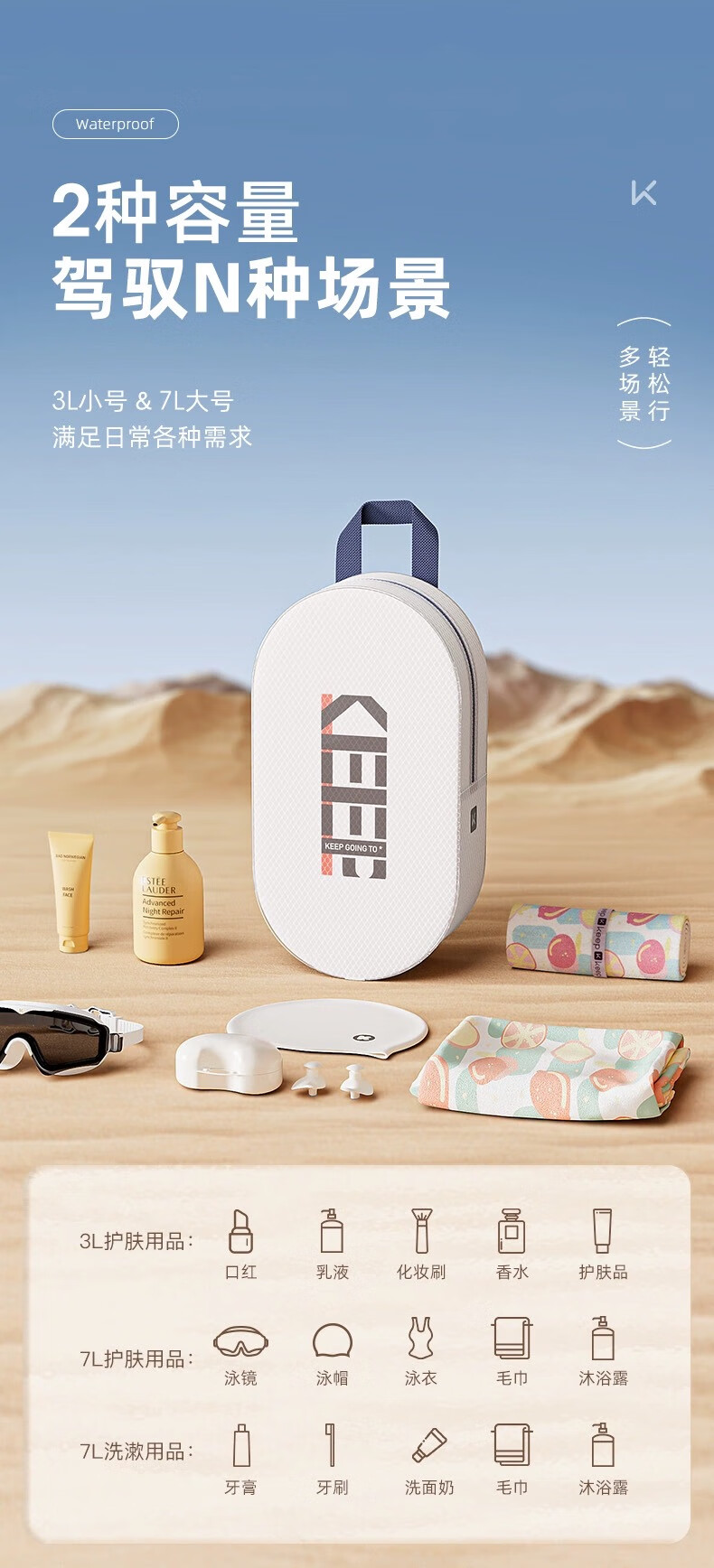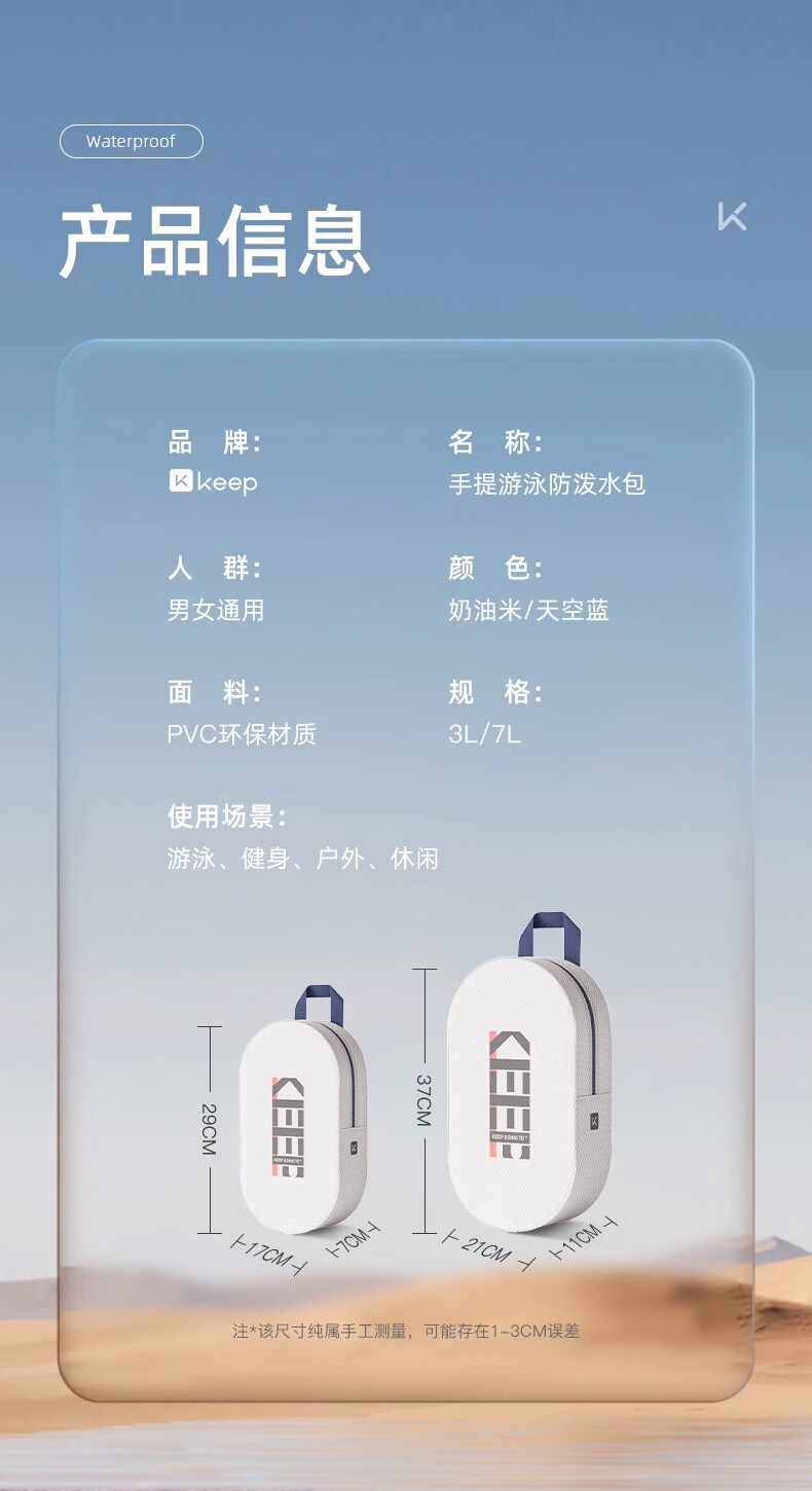 Keep Swimming Bag Waterproof Men's and Women's Fitness Washing Cosmetic Bag Portable Storage Large Capacity Portable Beach Bag Swimming Equipment Wave Blue 7L