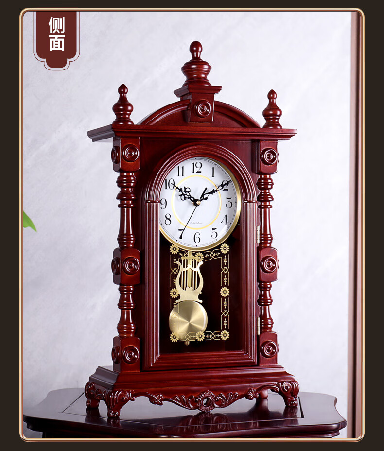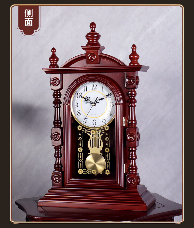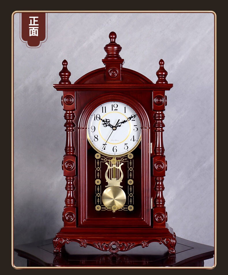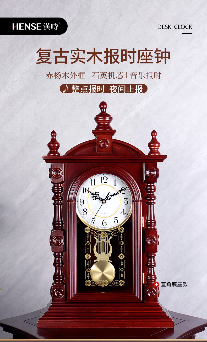 Hanshi (Hense) solid wood table clock living room retro table clock tabletop clock desk time striking quartz clock HD276 arc base (with time striking)