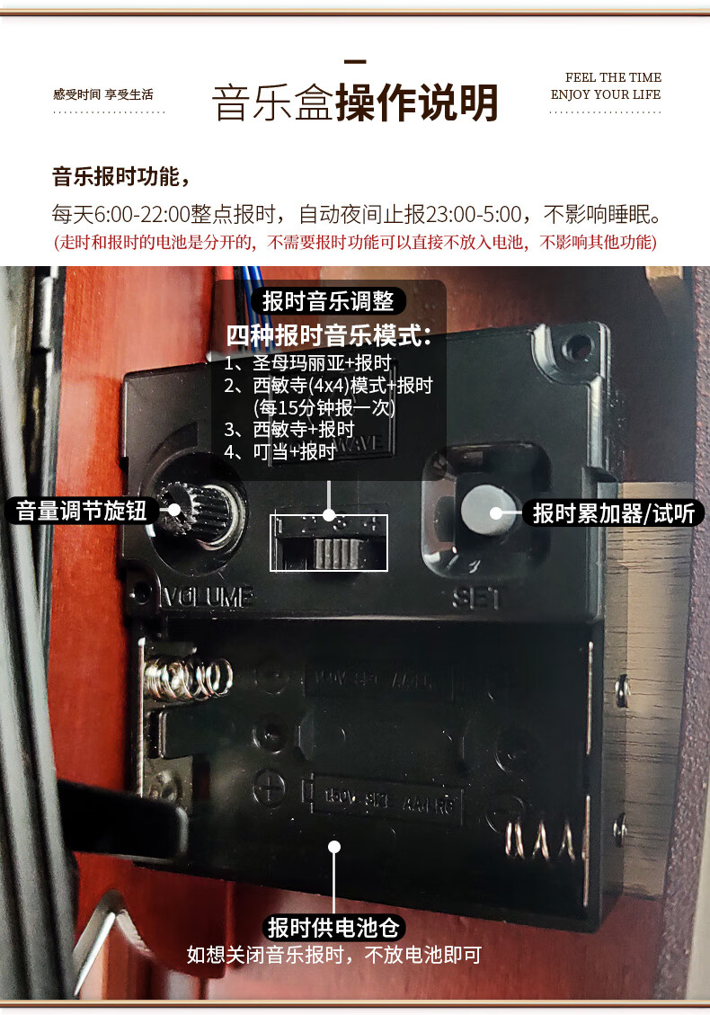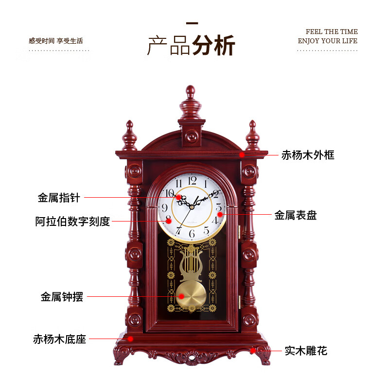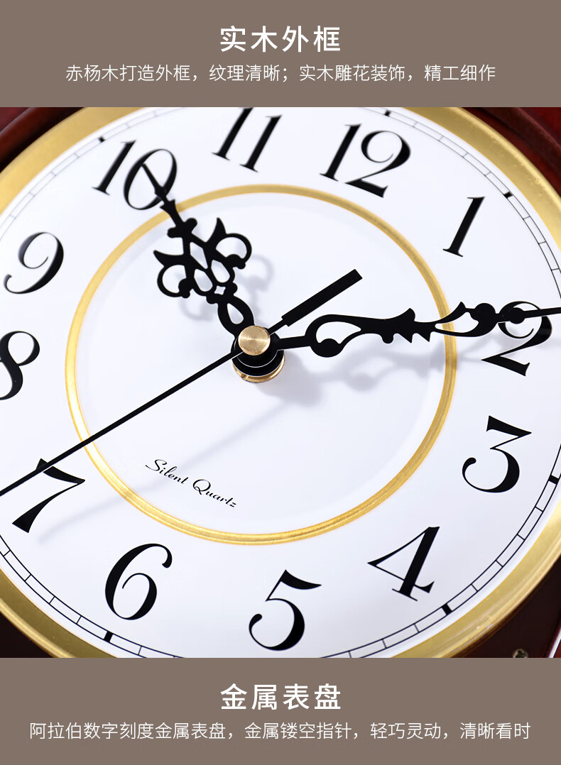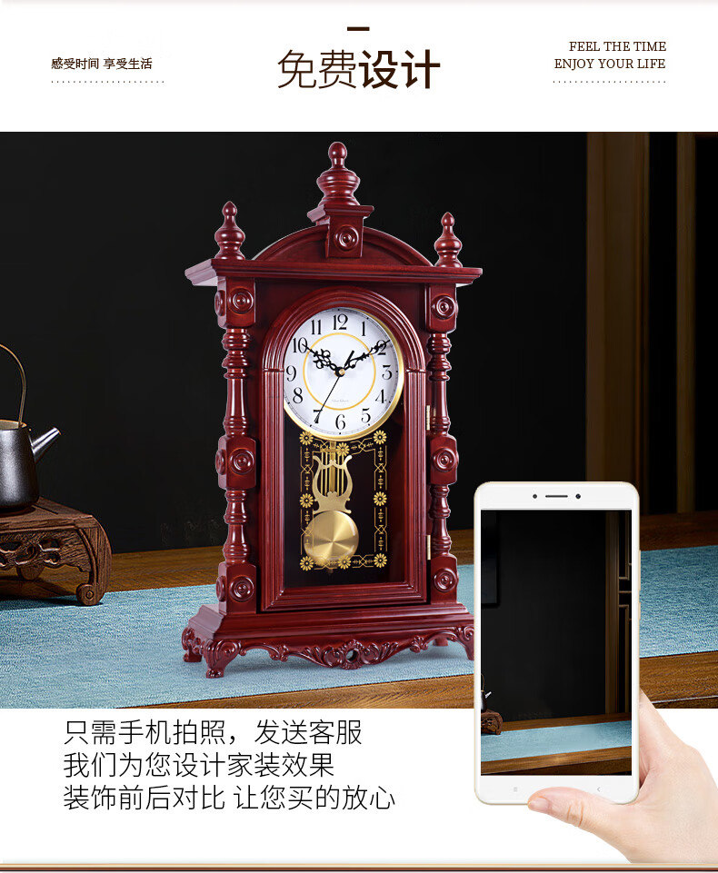 Hanshi (Hense) solid wood table clock living room retro table clock tabletop clock desk time striking quartz clock HD276 arc base (with time striking)