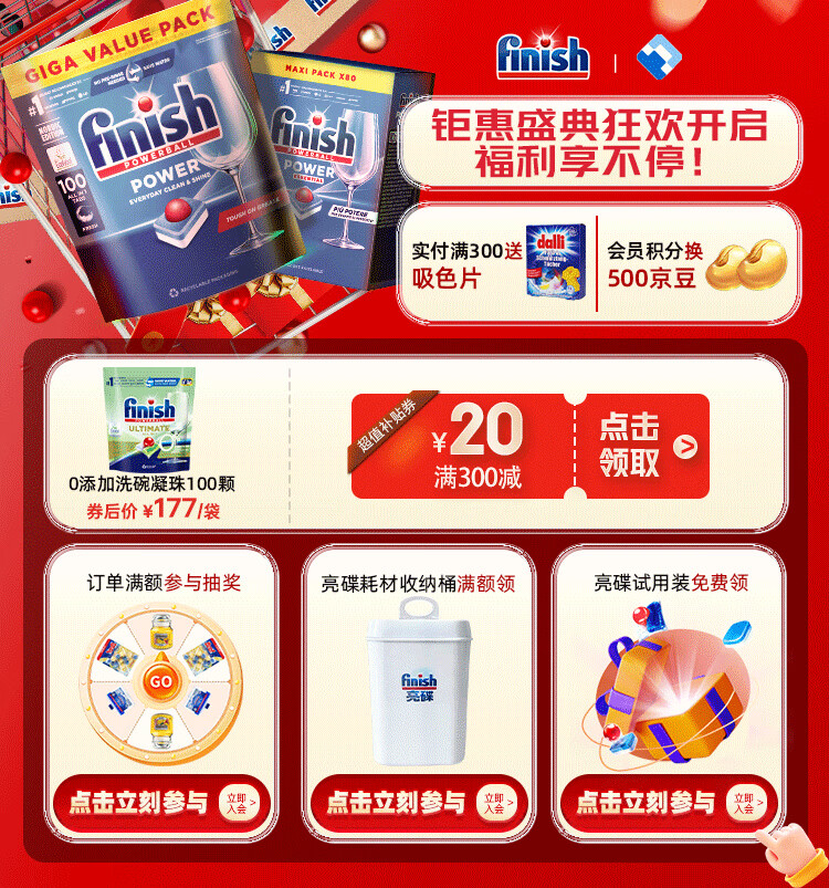 Finish dishwasher special detergent dishwashing powder three-in-one dishwashing block multi-effect dishwashing beads detergent 150 pieces 2 bags small water-soluble film dishwashing block Consult customer service for surprises
