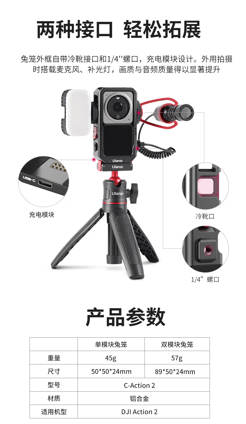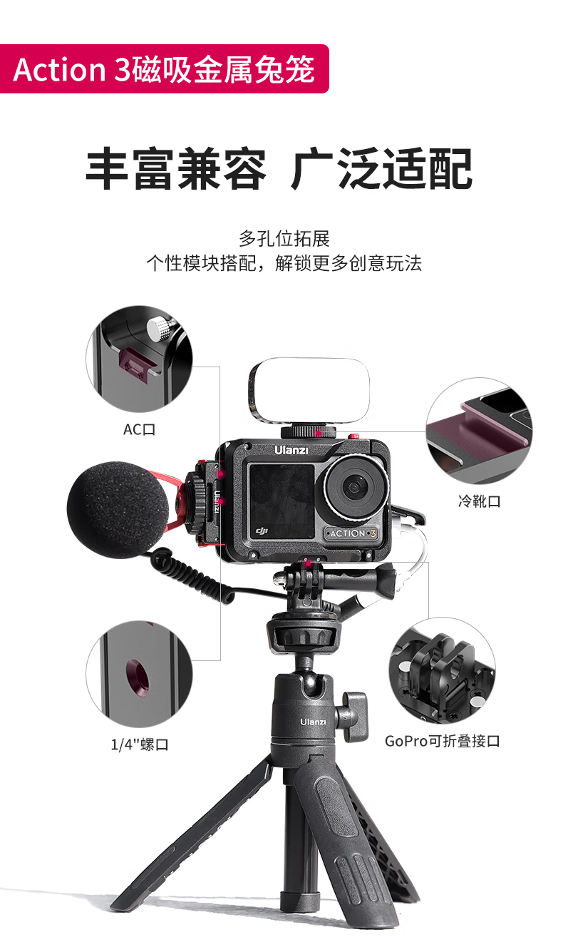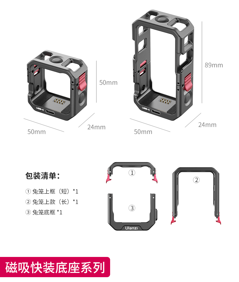 Ulanzi excellent basket DJI Action5pro/4/3 magnetic tripod DJI Osmo 360 metal rabbit cage accessories hanging neck bracket gimbal base fill light magnetic hanging neck bracket second generation | suitable for Action5/4/3