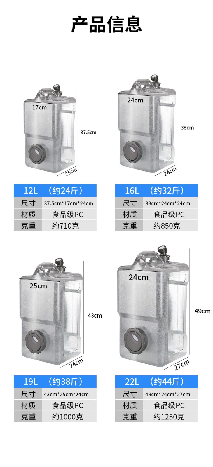 Baijie pure water bucket portable outdoor bucket plastic tea bucket drinking bucket mineral water large bucket storage bucket large capacity 16L faucet + bucket brush + non-hole cover + hose