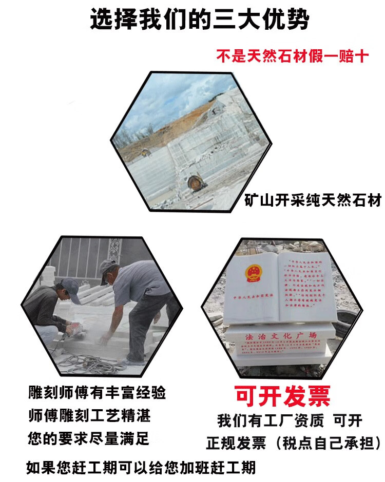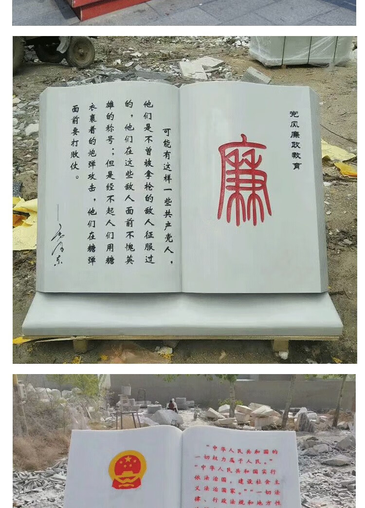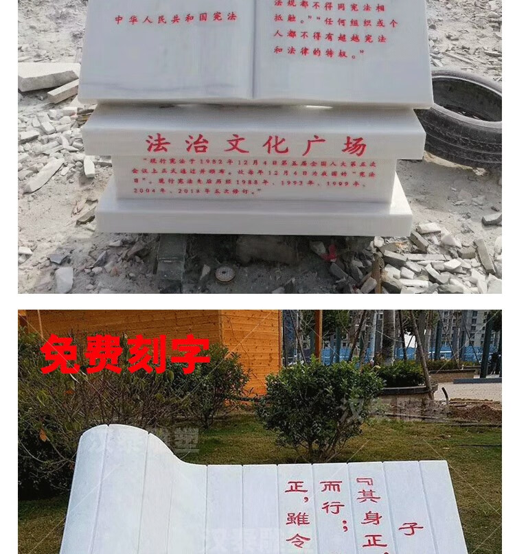 Kangxin Yahan white marble carving book sundial stone carving square park clean government and rule of law sculpture stone seal cultural three-dimensional character sculpture size fixed jin