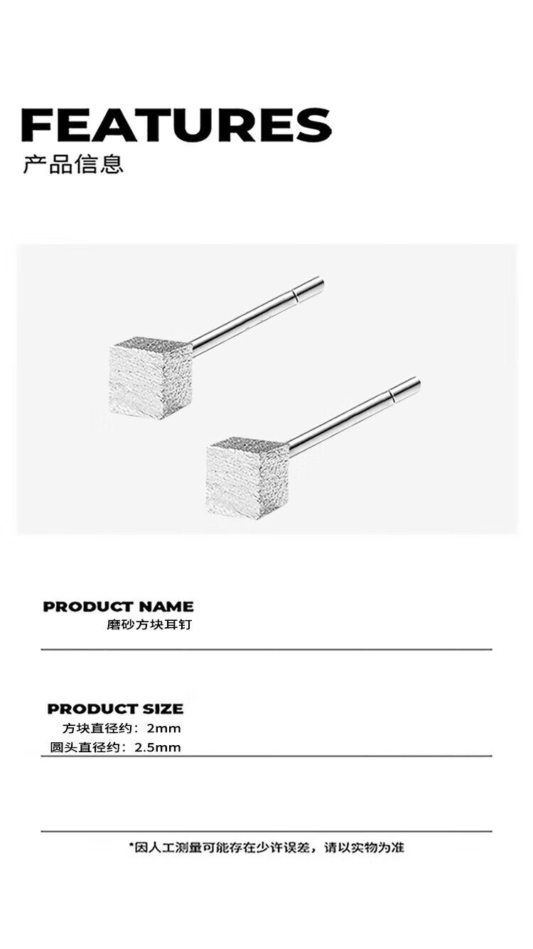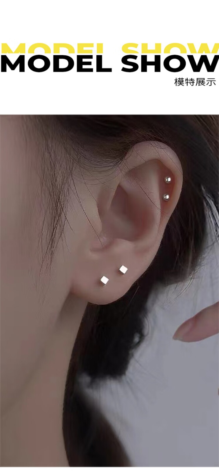 Yinyu Ear piercing men and women S925 silver needle earrings for sleeping, no need to pick them off, simple and compact ear bone earrings, birthday gifts for girls, ear square earrings YU048A