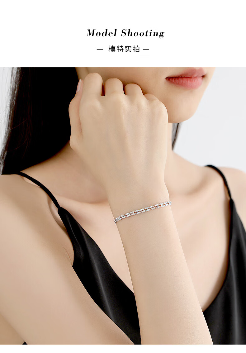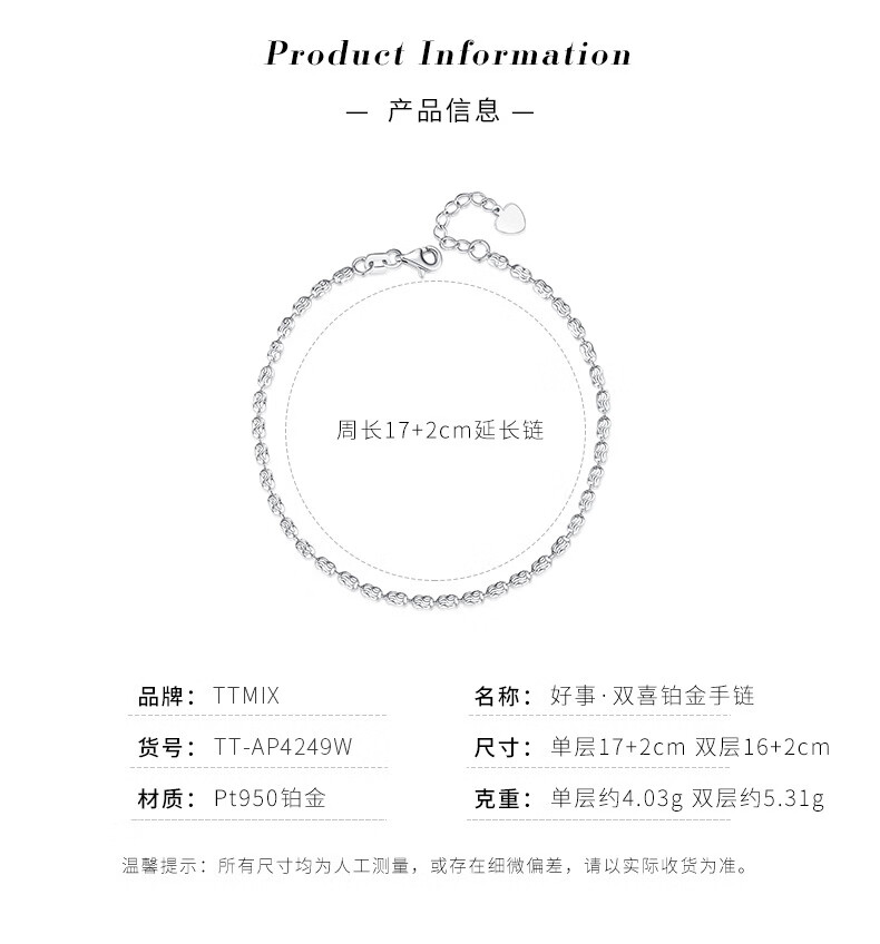 TTMIX platinum pt950 bracelet for women, light luxury platinum double layer sparkling diamond chain bracelet for wife, double layer 5.5-5.7g 17+2cm
