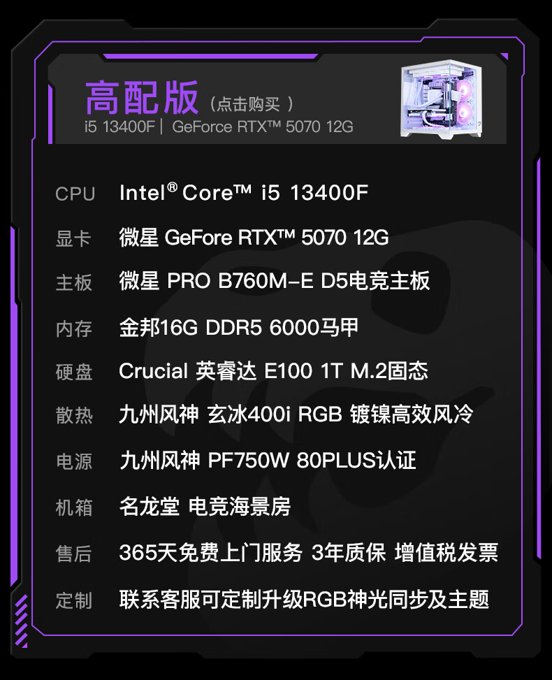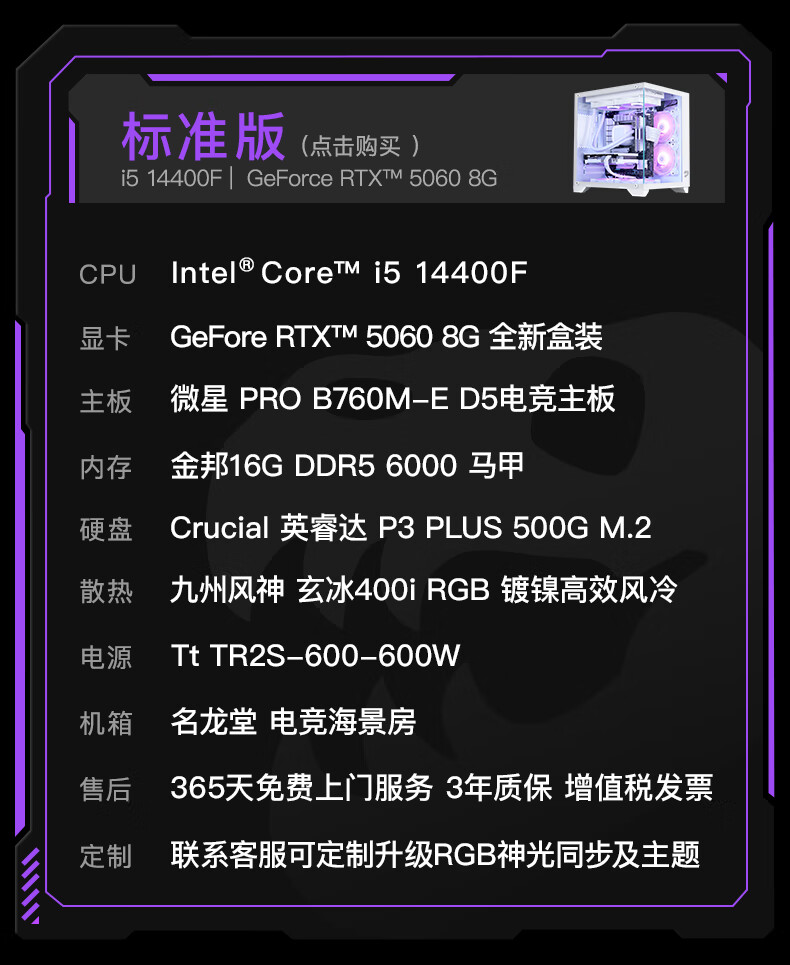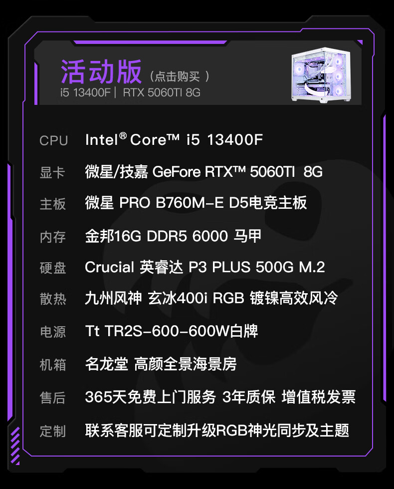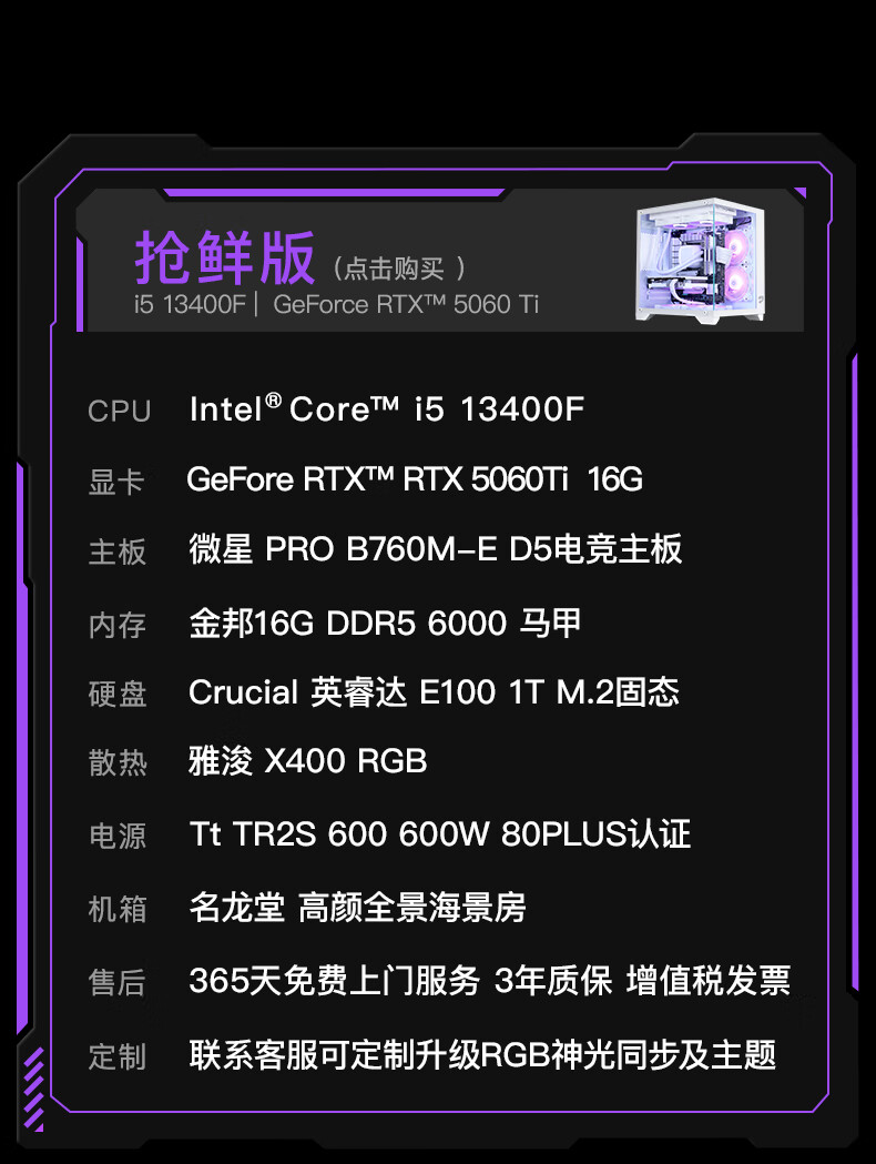 Minglongtang i5 13400F/RTX4060/5060ti graphics card assembly computer desktop host AI office mini game e-sports live broadcast DIY compatible machine complete desktop computer full set early version 13400F/RTX5060Ti 16G